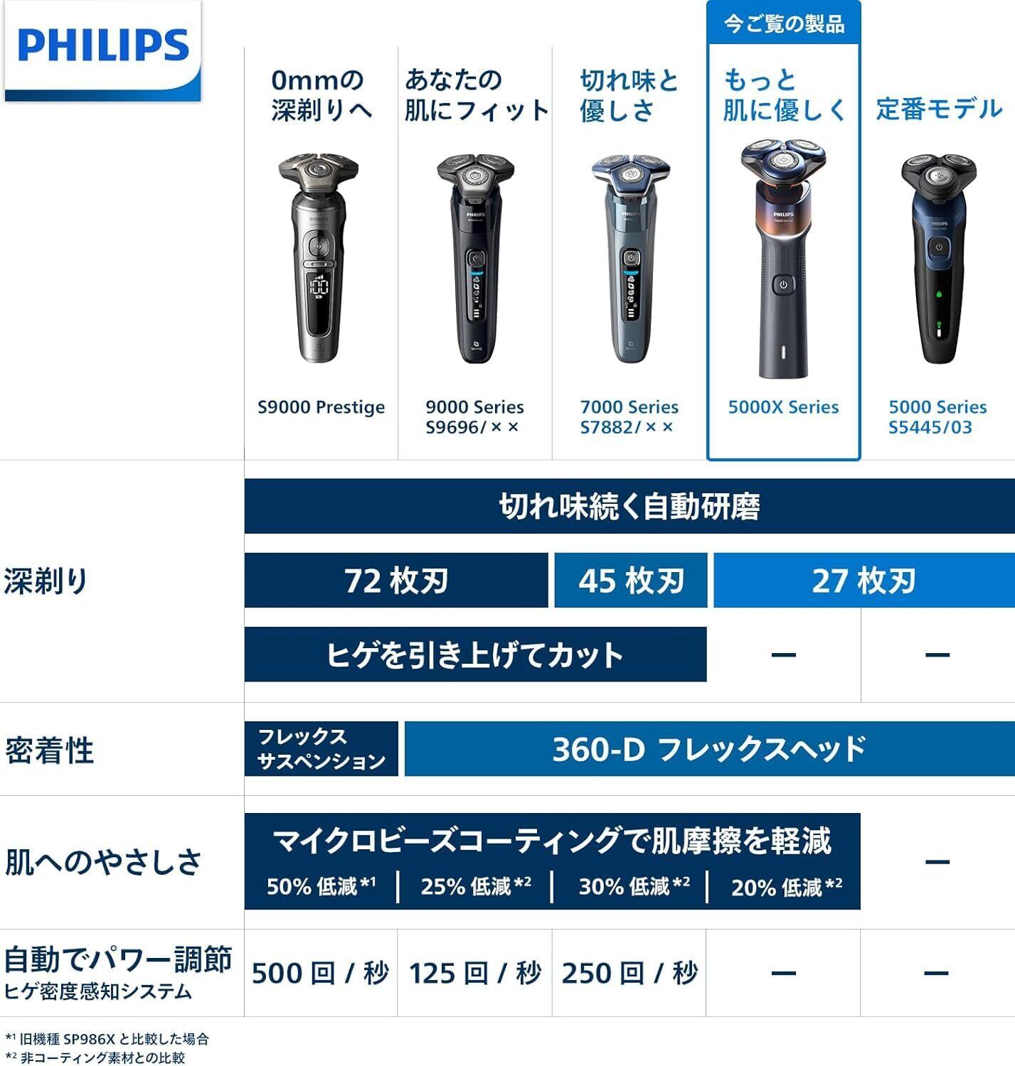 フィリップス 電気シェーバー 5000Xシリーズ 電動 髭剃り メンズ (27枚刃・回転式・お風呂剃り & 丸洗い可) X5007/00 ブラック