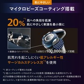 ●マイクロビーズコーティング で20%*²肌への負担を低減。肌にやさしく、刺激を最小限に。1平方センチメートルあたり最大100,000個のビーズが施されたマイクロビーズコーティングがシェーバーヘッドに搭載