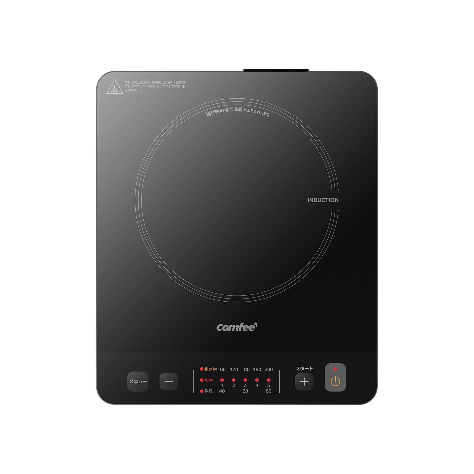 COMFEE' クッキングヒーター IH式 薄型 1000ワット 3種メニュー 揚げ物 3段保温 炒め料理 CIC-10GKBLA1