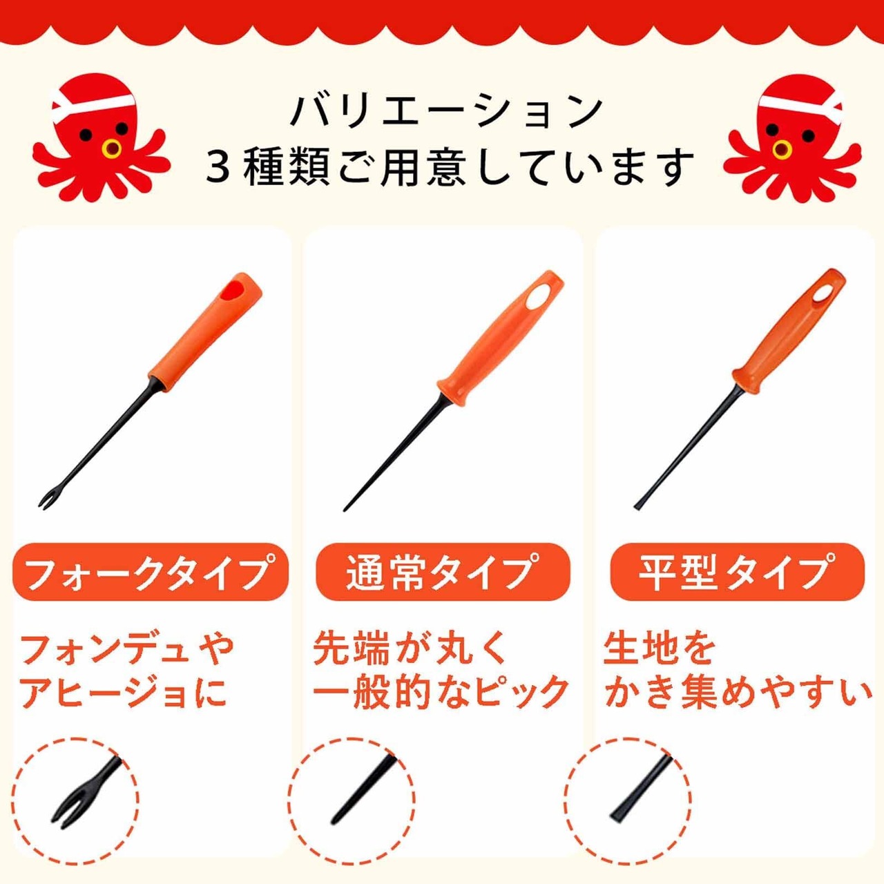 ●フッ素加工のプレートをキズつけにくくたこ焼きが作れる