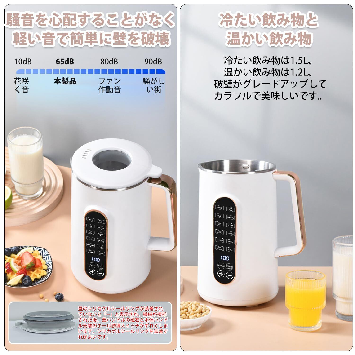 「28分だけで無添加本格豆乳が完成」 MACOLAUDER 豆乳メーカー 無濾過 無添加 1.2L熱/1.5L冷 12H予約 ジュース機 スープ機 スープメーカー 豆乳・ジュース・離乳食・花茶 304ステンレス10葉刃 静音