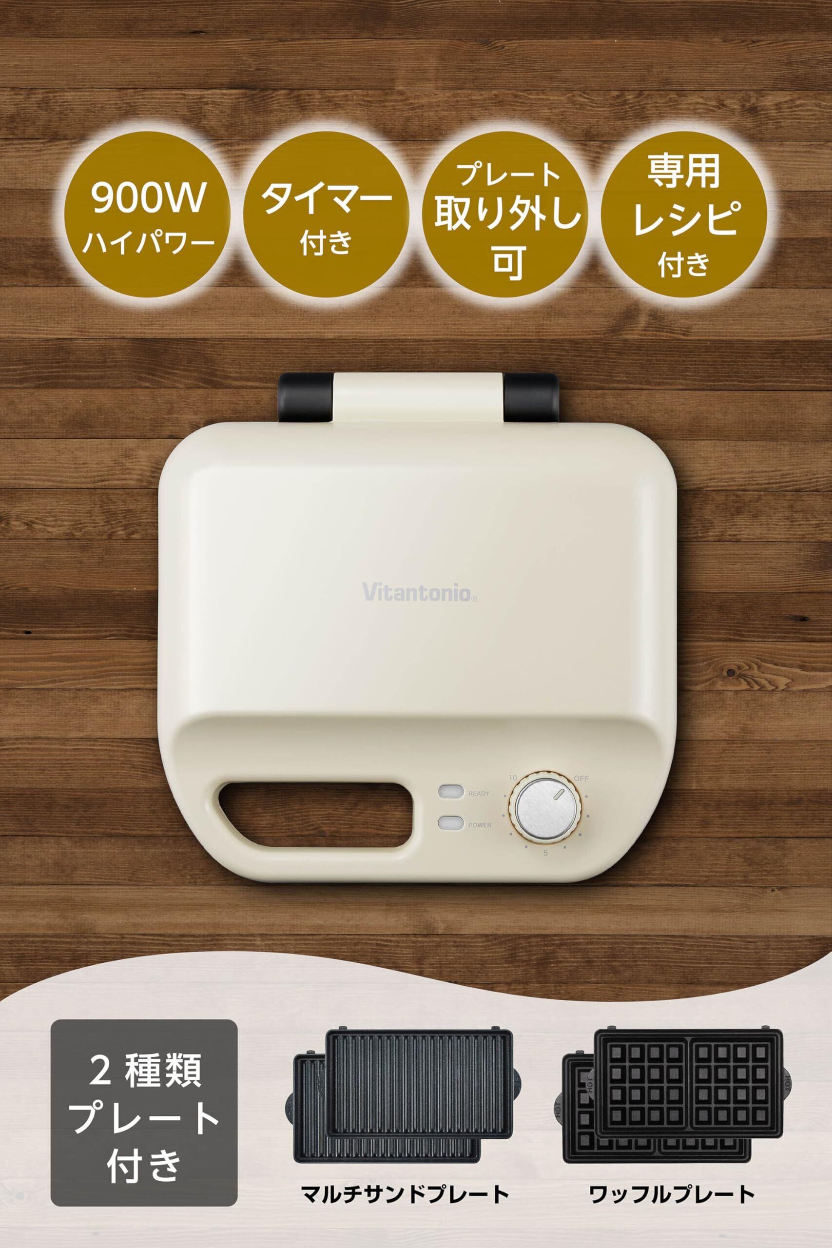 [ ビタントニオ 公式 ] ワッフル&ホットサンドベーカー (VWH-50-I)【 2種類のプレート付き 】 ホットサンドメーカー 電気 ワッフル メーカー サンドイッチメーカー (アイボリー)