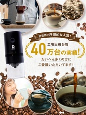 ️【ボタン1つの簡単操作】ボタン1つのシンプル設計で、使い方カンタン。どなたでも楽に操作できます。️USB充電式のコードレス電動コーヒーミルなので持ち運びも楽々。キッチンに置きっぱなしにしてもコードがないので台所がスッキリと片付きます。️コンパクトかつシンプルなデザインでプレゼントにもおすすめです。 ️【手軽に2杯分】コーヒー2杯分の豆をサッと挽けます。(1人前12gで計算)。朝の忙しい時間帯でもご家庭で簡単にコーヒータイムを。️ ダイヤルを調整してコーヒー豆の粒度を調節可能。コーヒーの粉受け・セラミック臼・ホッパー部分は全て分解して水洗いできるので、清潔です。(本体の電気通電部分は水洗い不可になります)