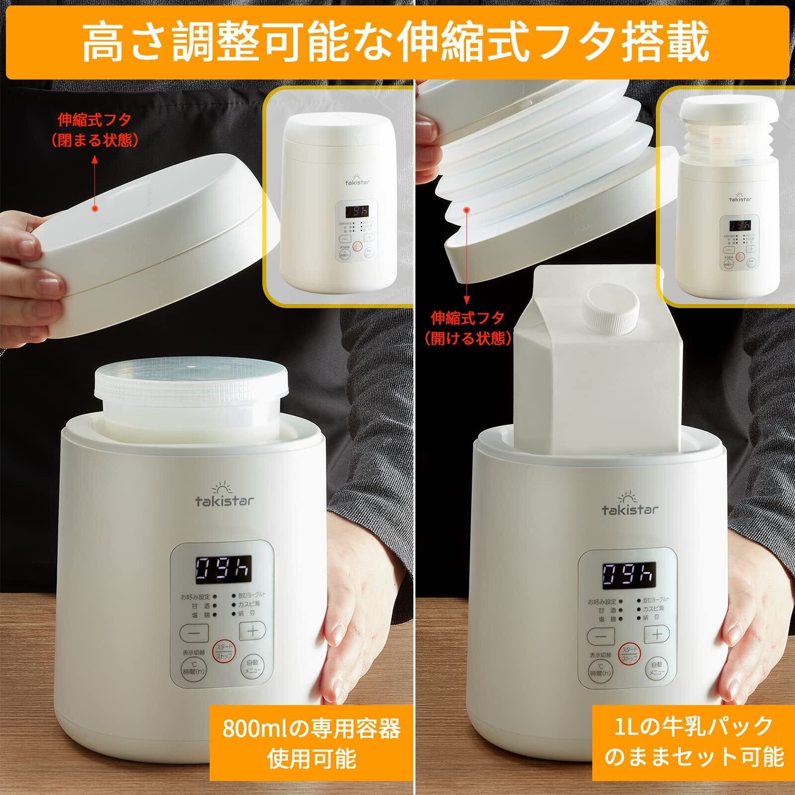 Takistar コンパクト ヨーグルトメーカー 甘酒メーカー 温度調節 タイマー設定 自動メニュー付き レシピブック付き 進化した立体加熱構造 日本品質とサービス ホワイト