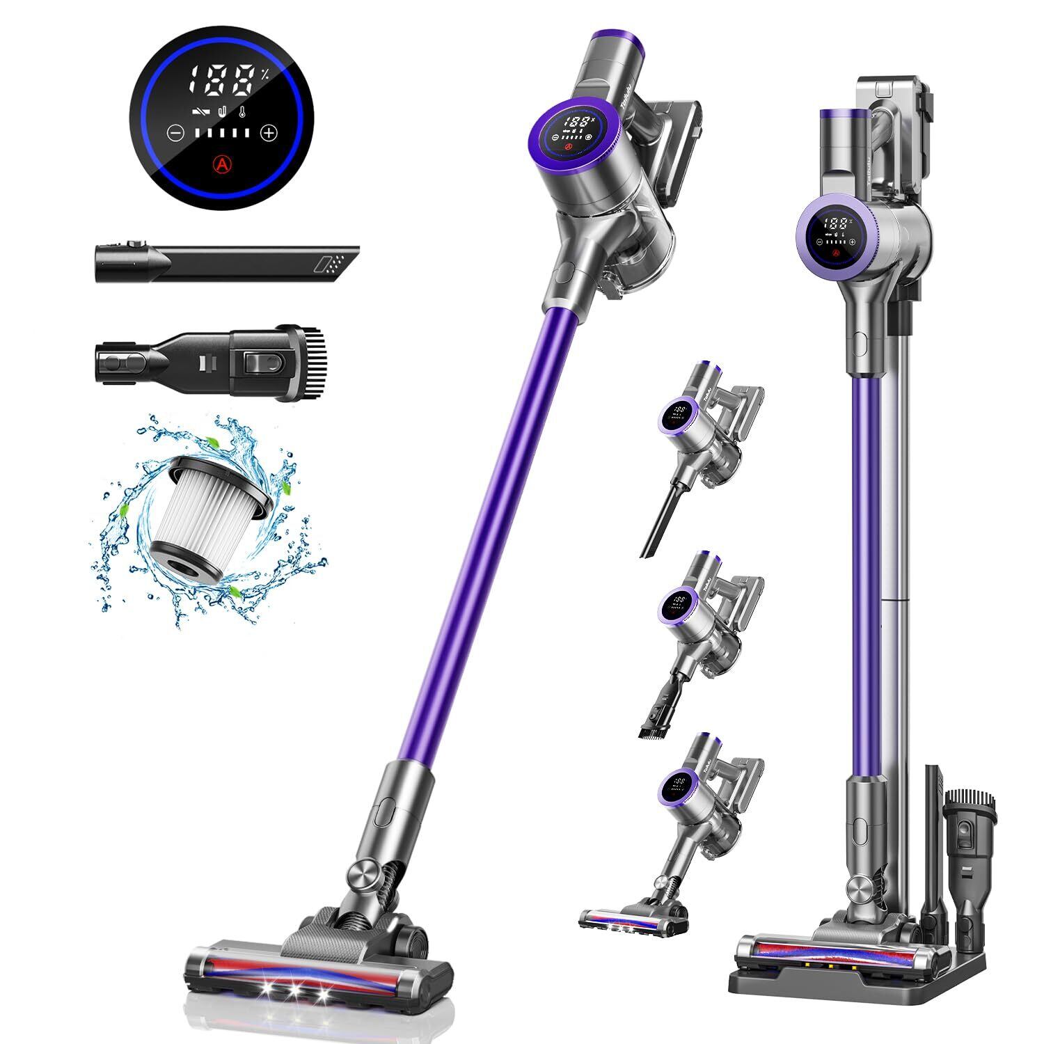 2in1充電&収納自立式スタント&55Kpa強力吸引,ホコリ自動検知機能&AUTOモード,LED液晶ディスプレイ,60分長時間稼働&掃除機 コードレス 軽量&サイクロン式 集塵,2W… 表示を増やす