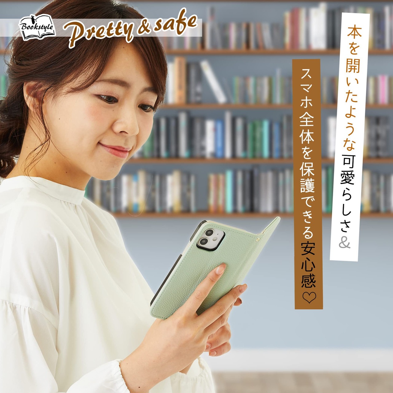 ベルトなしでもピタッと閉まるブックスタイルケース。本を開いたような可愛らしさ&スマホ全体を保護できる安心感。
