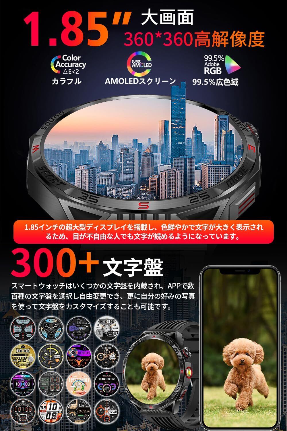 2025年新モデル スマートウォッチ Bluetooth通話 軍用規格 耐衝撃 1.85インチ超大画面 2本バンド付き APP通知 300+文字盤 100+運動モード 450mAh長持ちバッテリー IP68防水 iPhone/アンドロイド対応 日本語説明書付き (ブラック)