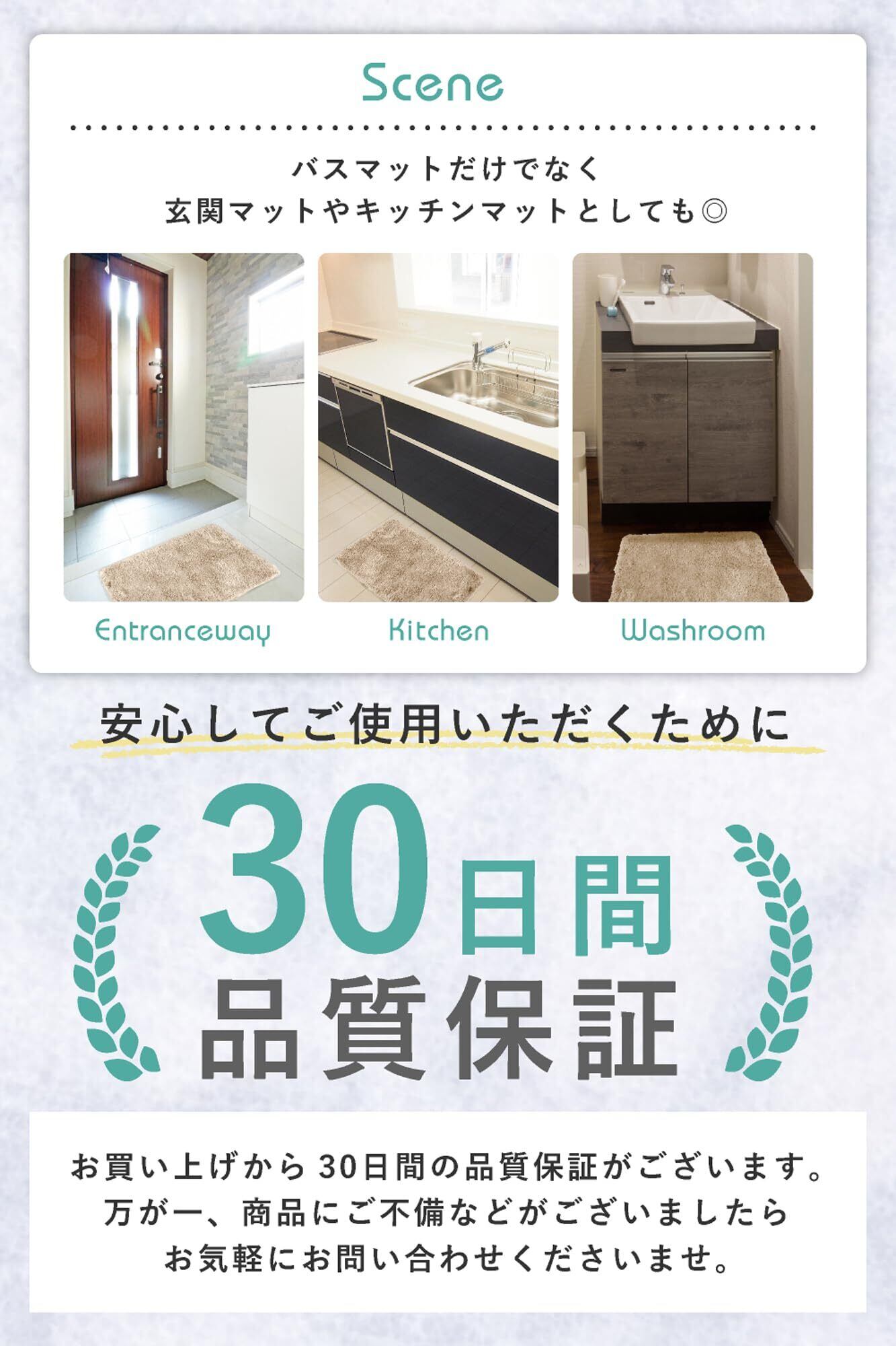 バスマット 説明書付き 室内 洗える 80×50 cm 玄関マット 滑り止め ラグ… (ベージュ, 80x50cm)