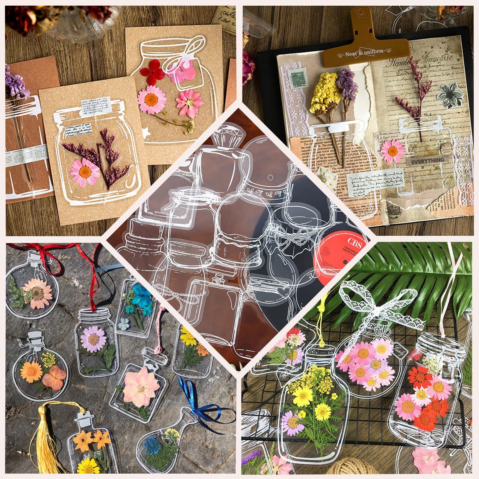 Anboli ドライフラワーのしおり 透明 ブックマーク 押し花キット しおり 可愛い 花のページ ステッカー 大量 天然花読書マーク 手作り ドリフトボトル 香水瓶 ガラス瓶 クリエイティ 日記帳 DIYドライフラワーメーカー 押し花セット 幼稚園 大人用 子供用 ホームスクール用品 文房具読む 60枚 15種類