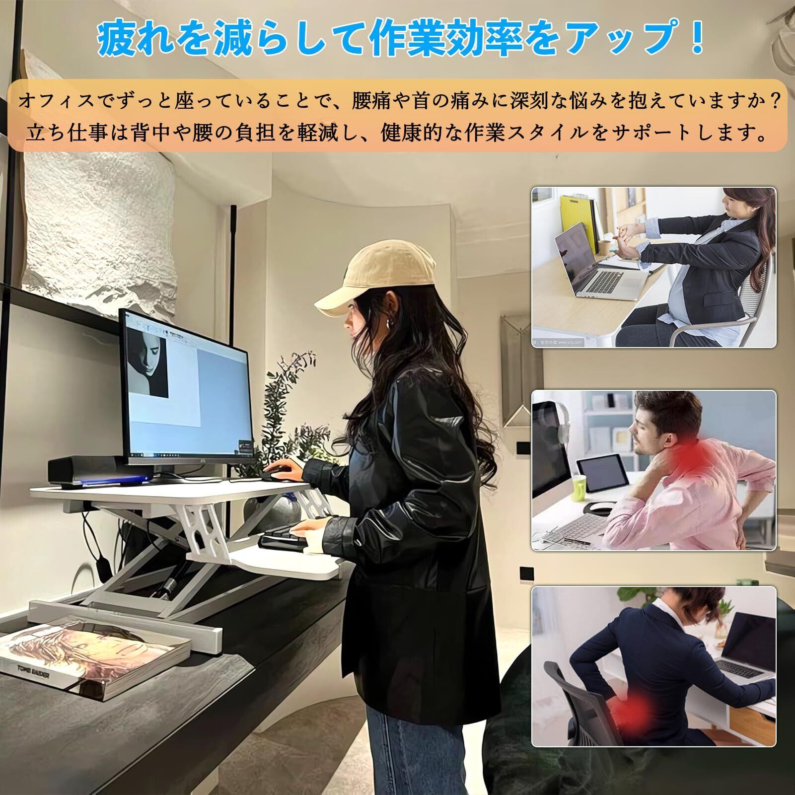 【座位立位両用】高さが14.5cm~51cm調節が可能で、座って作業するや立って作業するか自由に切り替えできるため、長時間の座りっぱなしから解放し、背中や腰の負担を軽減し、より健康的な作業スタイルを促進します。