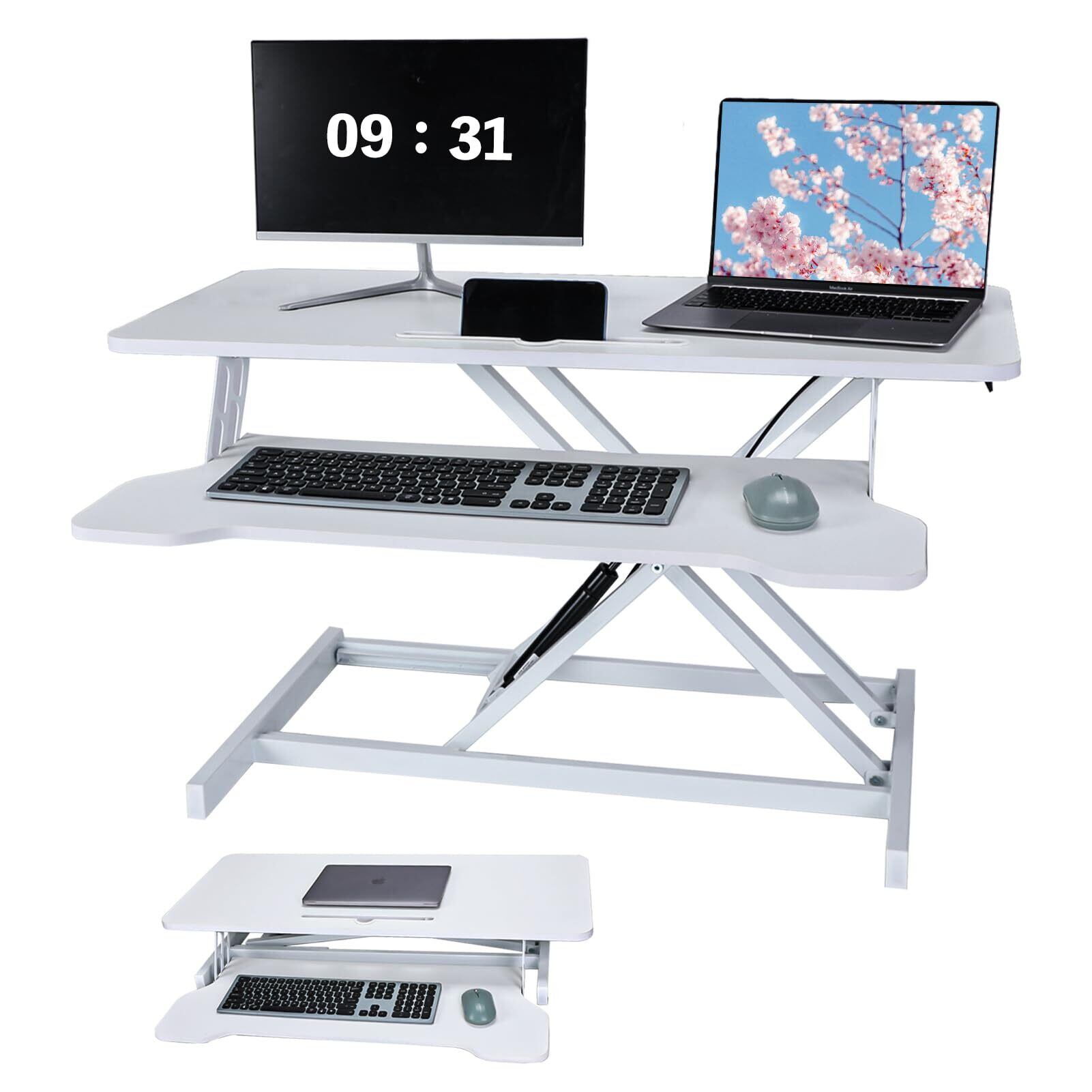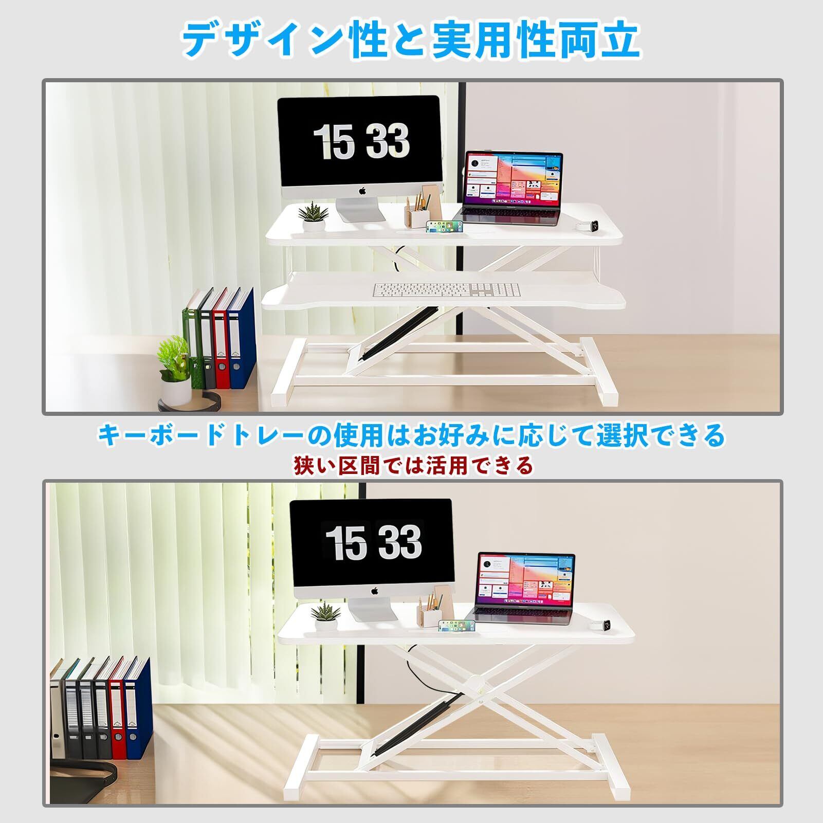 YOGOTO スタンディングデスク 卓上 ガス圧昇降式テーブル 静音 昇降式デスク 無段階 高さ14.5~51cm調整可 天板サイズ91×40cm 耐荷重12kg 座位立位両用 キーボード台付き 卓上デスク オフィスワークテーブル 在宅勤務 ホワイト 幅91cm