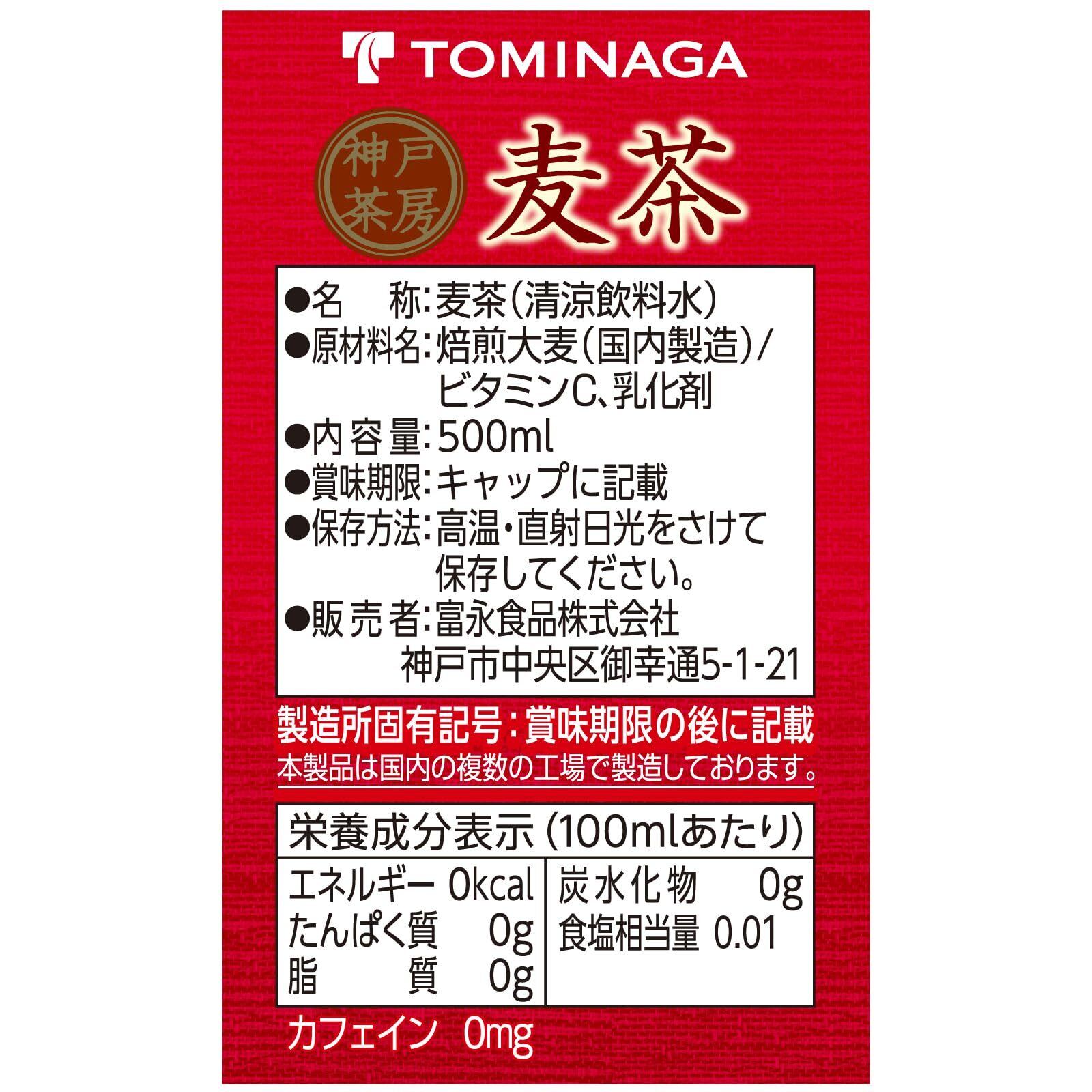 神戸茶房 麦茶 PET 500ml ×24本 [ 厳選六条大麦使用 ノンカフェイン 無香料 無着色 国内製造 ]