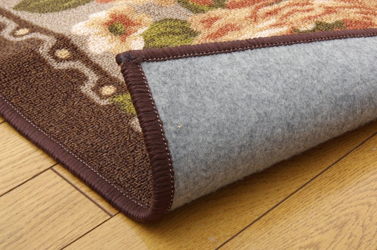 イケヒコ・コーポレーション ラグ カーペット 3畳 ナイロン 花柄 簡易カーペット 『撥水キャンベル』 ブラウン 江戸間3畳(約176×261cm)