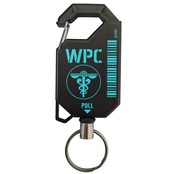 鍵などを腰やカバンに付けたままで使える“公安局"のマークがプリントされた、コスパオリジナル形状の金属製リールキーホルダー。