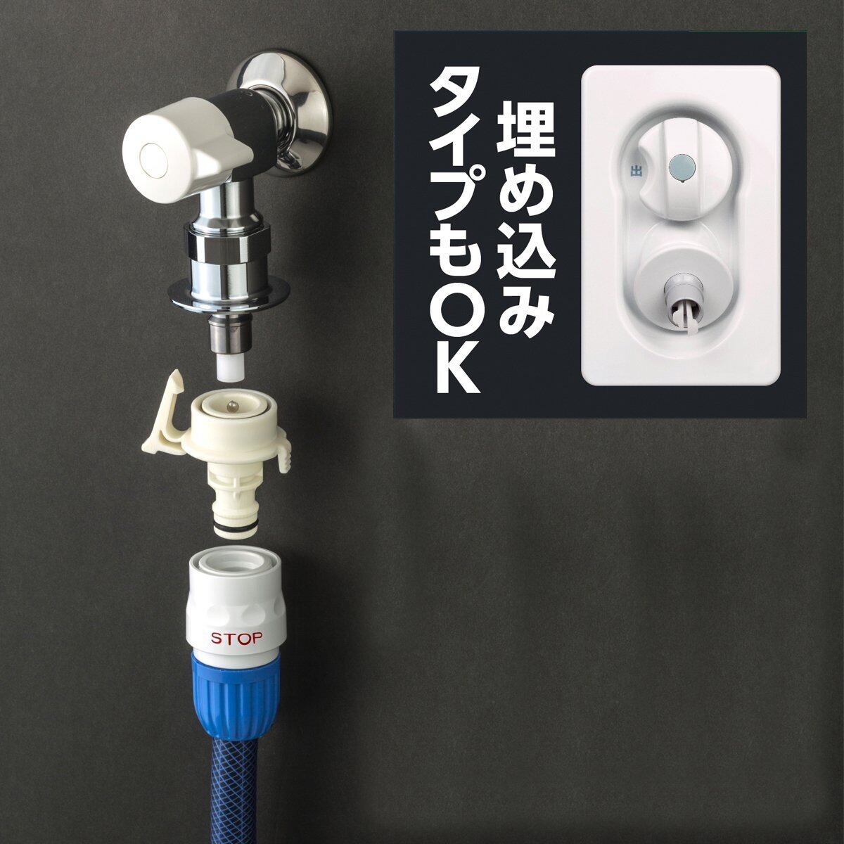 ● 洗濯機用蛇口に散水ホースを接続。
