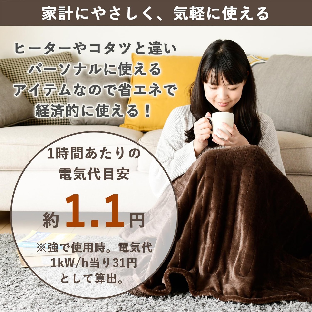 【商品仕様】▪本体サイズ:140×80cm ▪電源:交流100V(50/60Hz) ▪消費電力:50W ▪電源コードの長さ:電源側=1.96m/本体側=0.65m ▪消費電力量:強=約35Wh/適温=約22Wh/弱=約13Wh ▪1時間あたりの電気代:強=約1.1円/適温=約0.7円/弱=約0.4円(1kW/h当り31円として計算) ▪表面温度:強=約53度/適温=約33度/弱=約21度 ▪期間:お買い上げ日より1年間(の範囲については、書をご確認ください。(一般家庭用以外(業務用など)に使用された場合の故障及び損傷などは対象外となります))