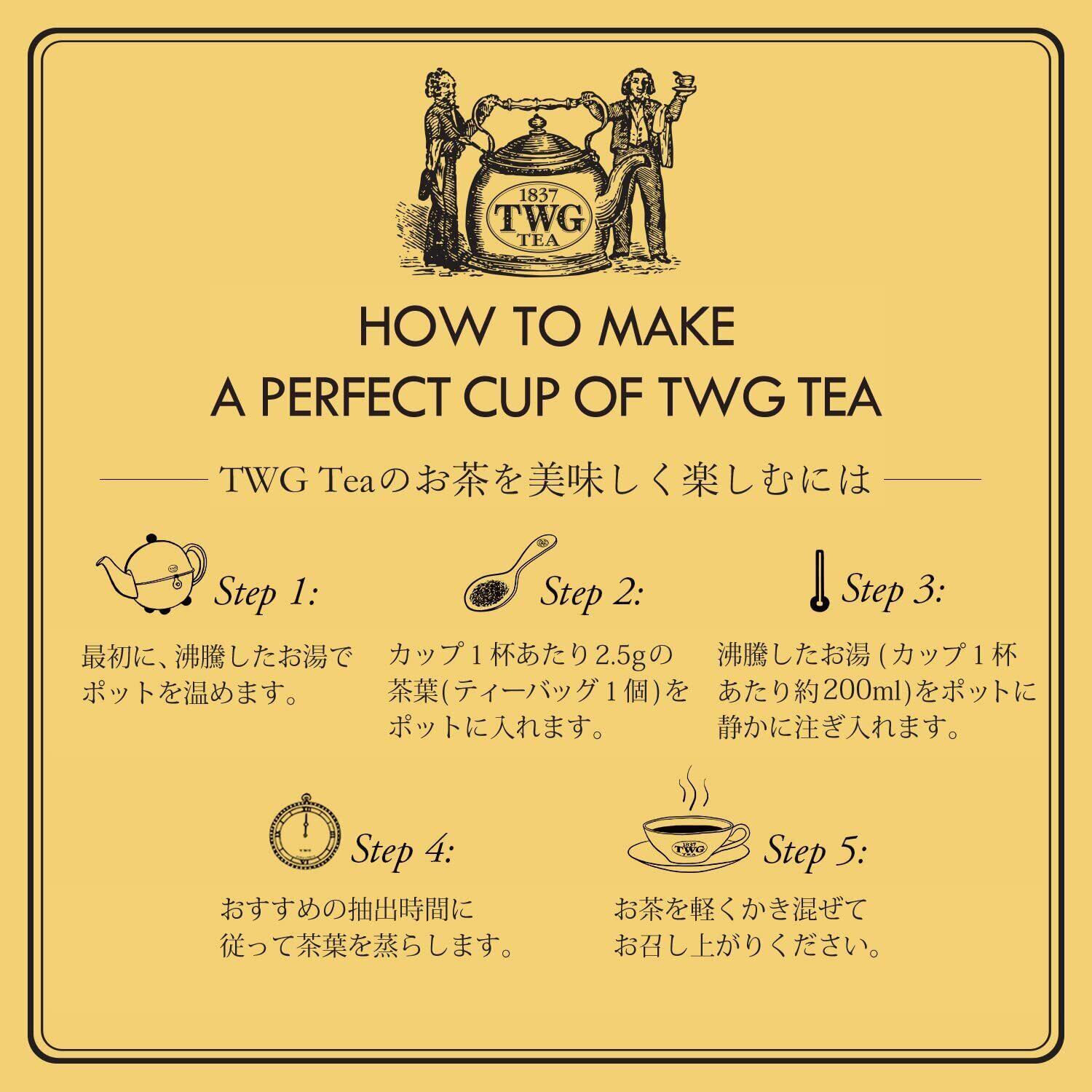 クラシックティー: 力強く濃厚な風味の中に、軽やかな花のような香りが漂うTWG Tea のブロークンリーフの紅茶は、朝のトーストとマーマレードに良く合います。