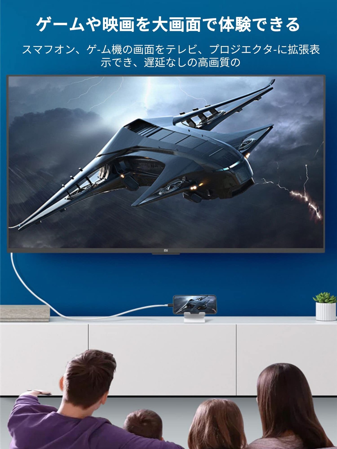 【様々な映像出力に対応】HDMIポートを持つテレビ、プロジェクター、モニター、モバイルディスプレイなど様々な機器に簡単に映像を出力することができます。HDMIポートはモニター、テレビ、プロジェクターにのみ接続でき、他のコンバーターには接続できません。遅延なく快適にプレイできて、大画面でより迫力のあるゲームを楽しむことができます。プロジェクターの場合は、大きなスクリーンや壁に投影することで、家族や友達と一緒にゲームを楽しめます。