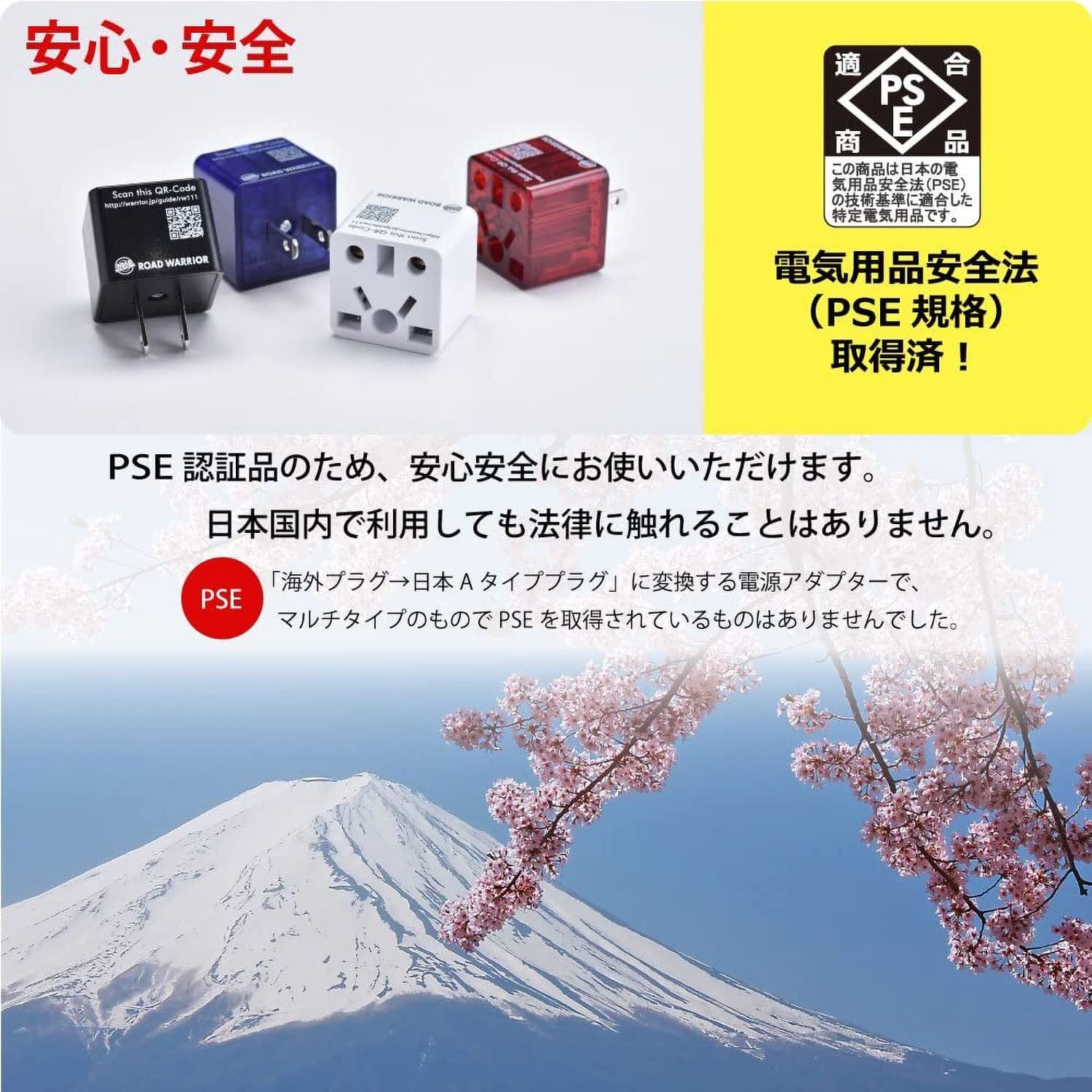 ●【電気用品安全法(PSE)取得商品】世界初!複数の電源プラグタイプに対応するマルチ変換アダプターとして初めてPSE規格を取得。ほぼ全世界の電気製品を日本国内で安全にご使用いただけます。この商品は日本の電気用品安全法(PSE)の技術基準に適合した特定電気用品です。【定格:125V 6A】