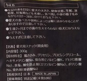 鶏ささみ、グリセリン、プロピレングリコール、ヘキサメタリン酸Na、保存料(ソルビン酸K、デヒドロ酢酸Na)、食塩、酸化防止剤(エリソルビン酸Na)、ポリリン酸Na、発色剤(亜硝酸Na)