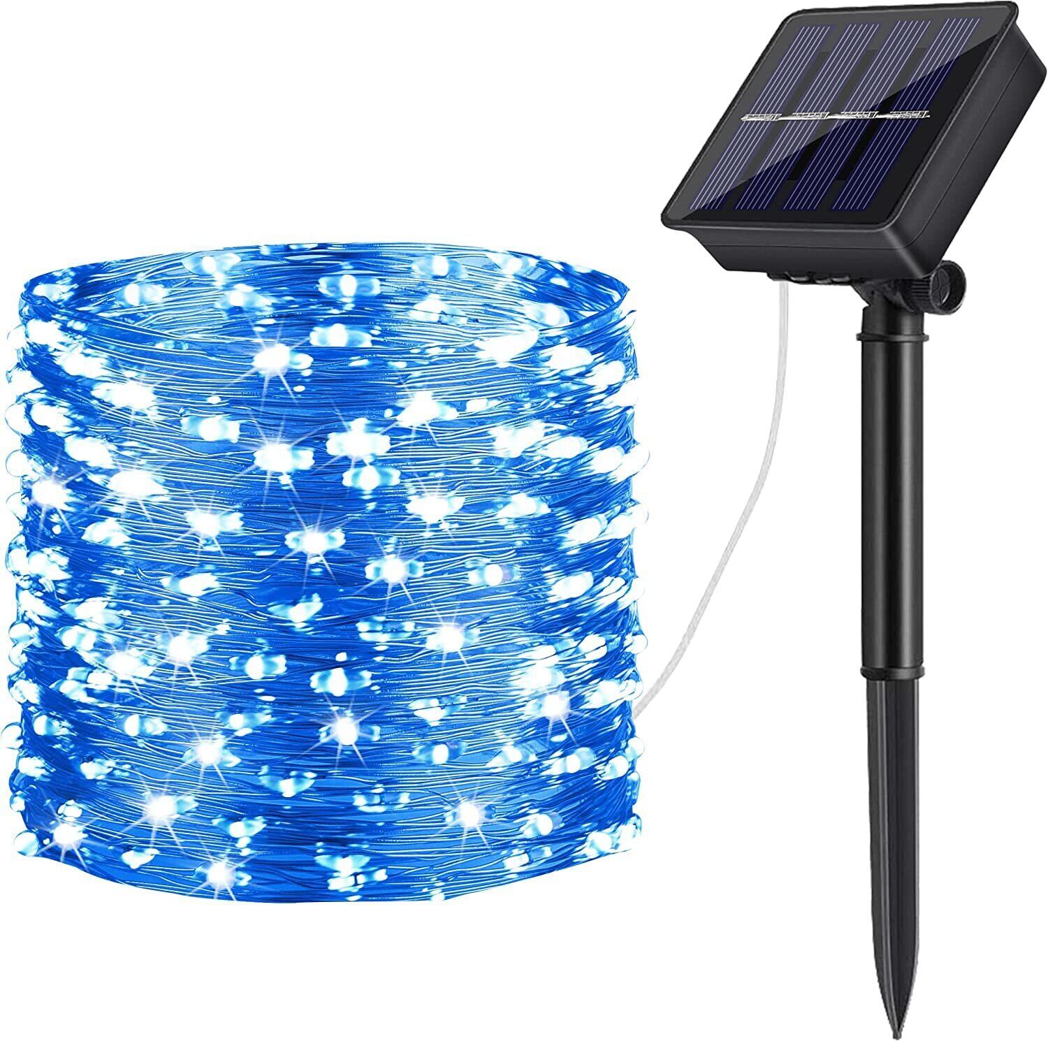 LEDイルミネーションライト ソーラーフェンス 屋外 気分で選べる8パターン点灯できる 100球 10M IP65防水で雨や雪が降る日でも心配なし 誕生日パーティー・結婚式などの飾り ブルーライト