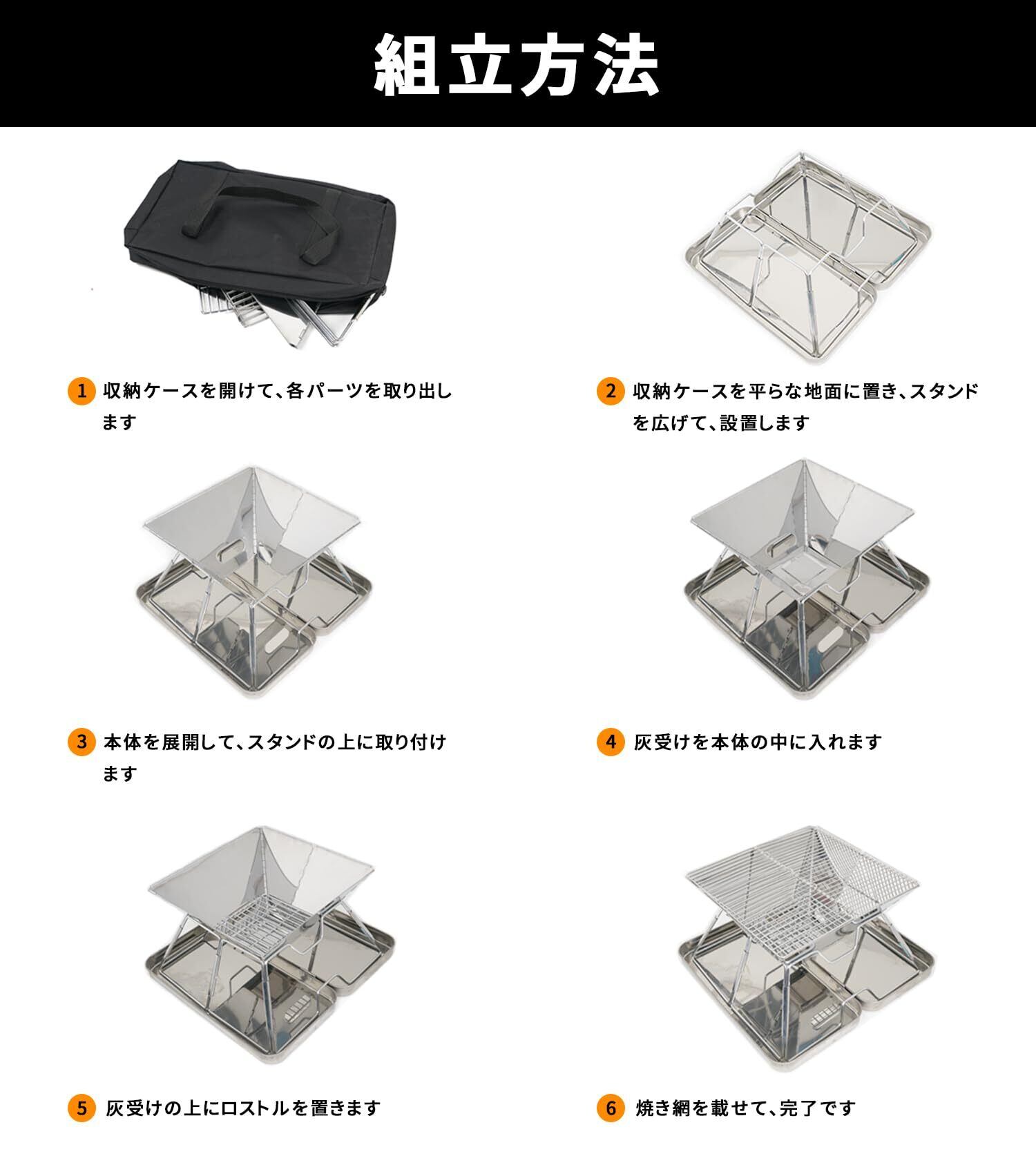 【組立簡単】各パーツを見れば、直感的に組立られる程易しさです。組み立て・撤収を素早く済ませることで、焚き火やBBQの時間を最大限に過ごすことができます。取り扱い説明書もありますので、初心者でも安心してお使いいただけます。
