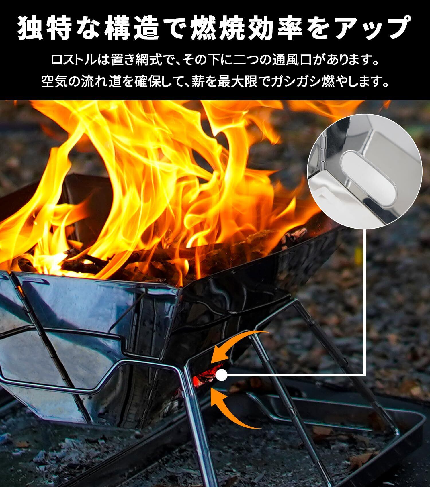 Moon Lence バーベキューコンロ 焚き火台 収納ケース付き 折りたたみ ステンレス製 2-4人用 アウトドア キャンプ A101