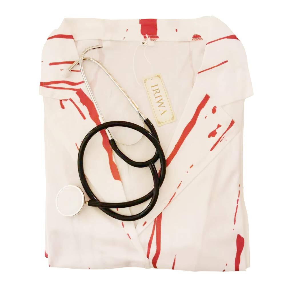 [IRIWA] ハロウィン ドクター服 ナース服 ゾンビ コスプレ衣装 血まみれ 医者 看護婦コスチューム 制服 タトゥーシール 聴診器 女性 男性用 仮装セット