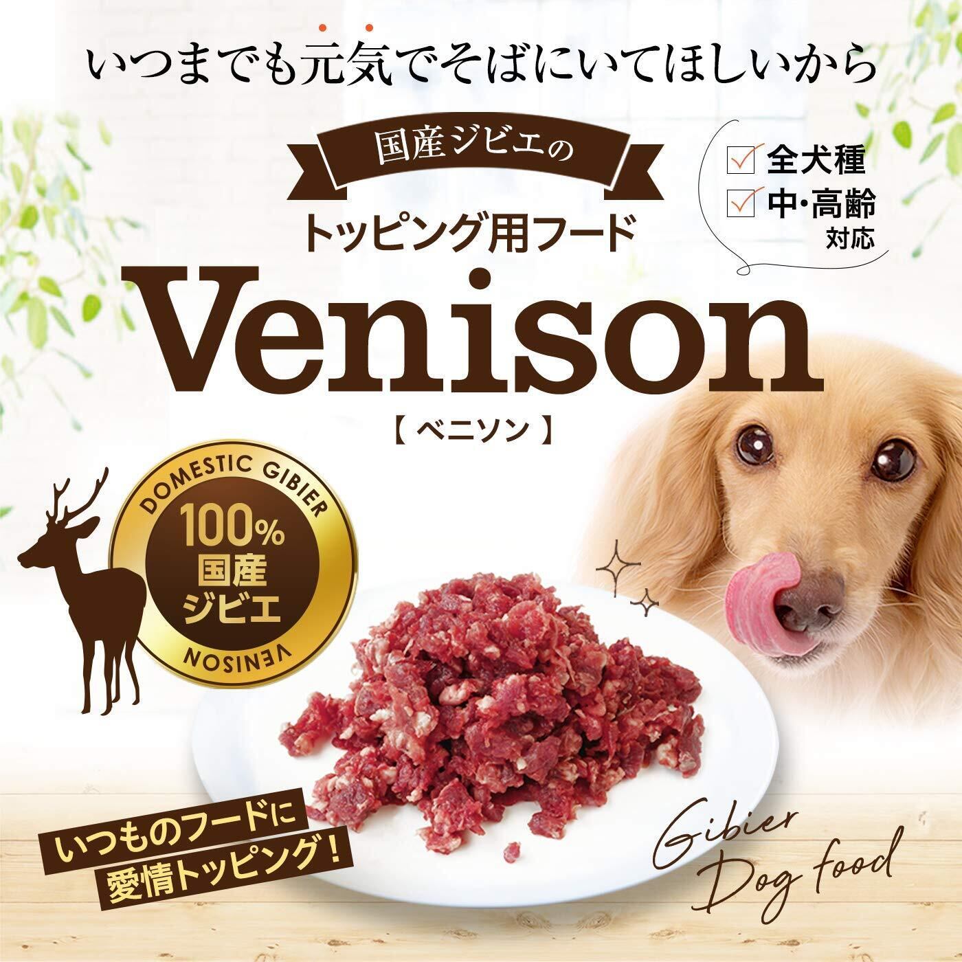 鹿肉は別名を赤身の鶏肉とも言われ、牛肉と比較すると高たんぱく、低脂質(5分の1)で、エネルギーは約半分。基礎代謝量が落ちたシニア犬の肥満防止につながります。 (代謝エネルギー107kcal/100g)