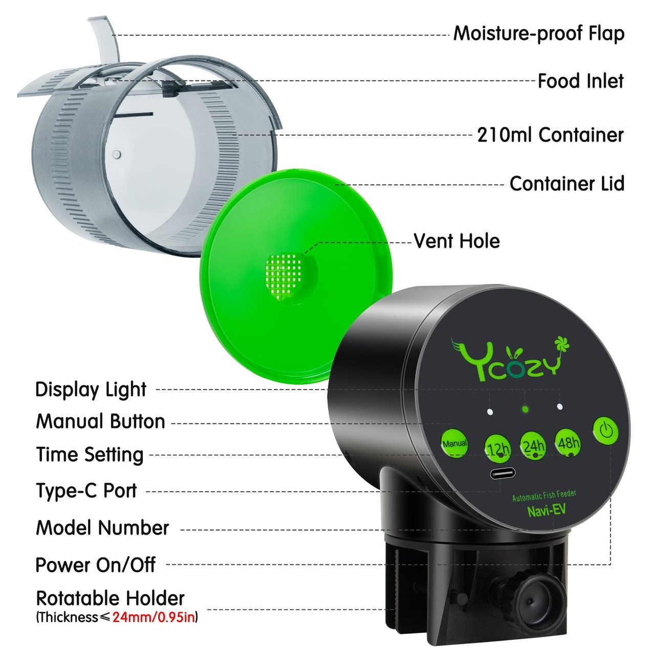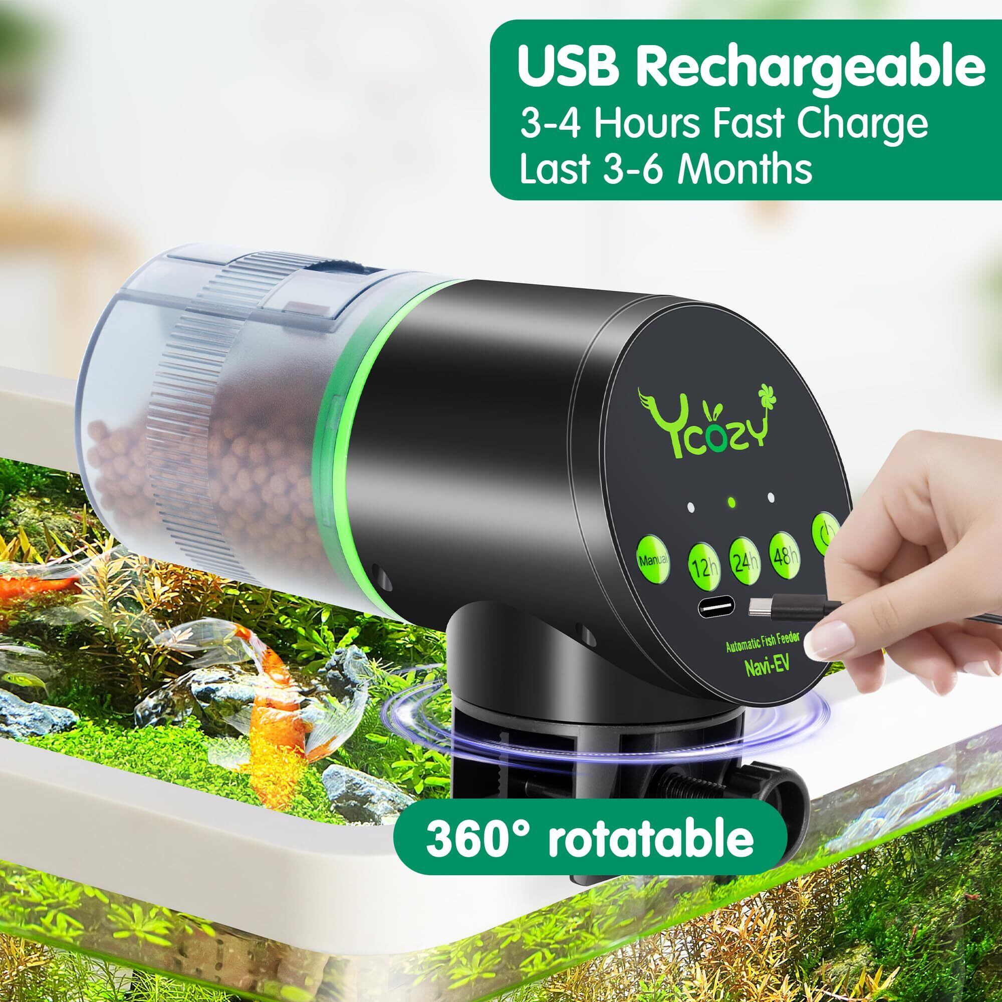 Ycozy 魚自動給餌器 二代 USB充電式 超簡単操作 湿気防止 水族水槽用フィーダー 熱帯魚 金魚オートフィーダー 水槽 自動餌やり機 餌やり器 | Navi-EV