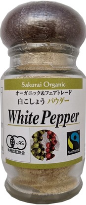 桜井食品 有機ホワイトペッパー(パウダー) 瓶入 30g ×3個