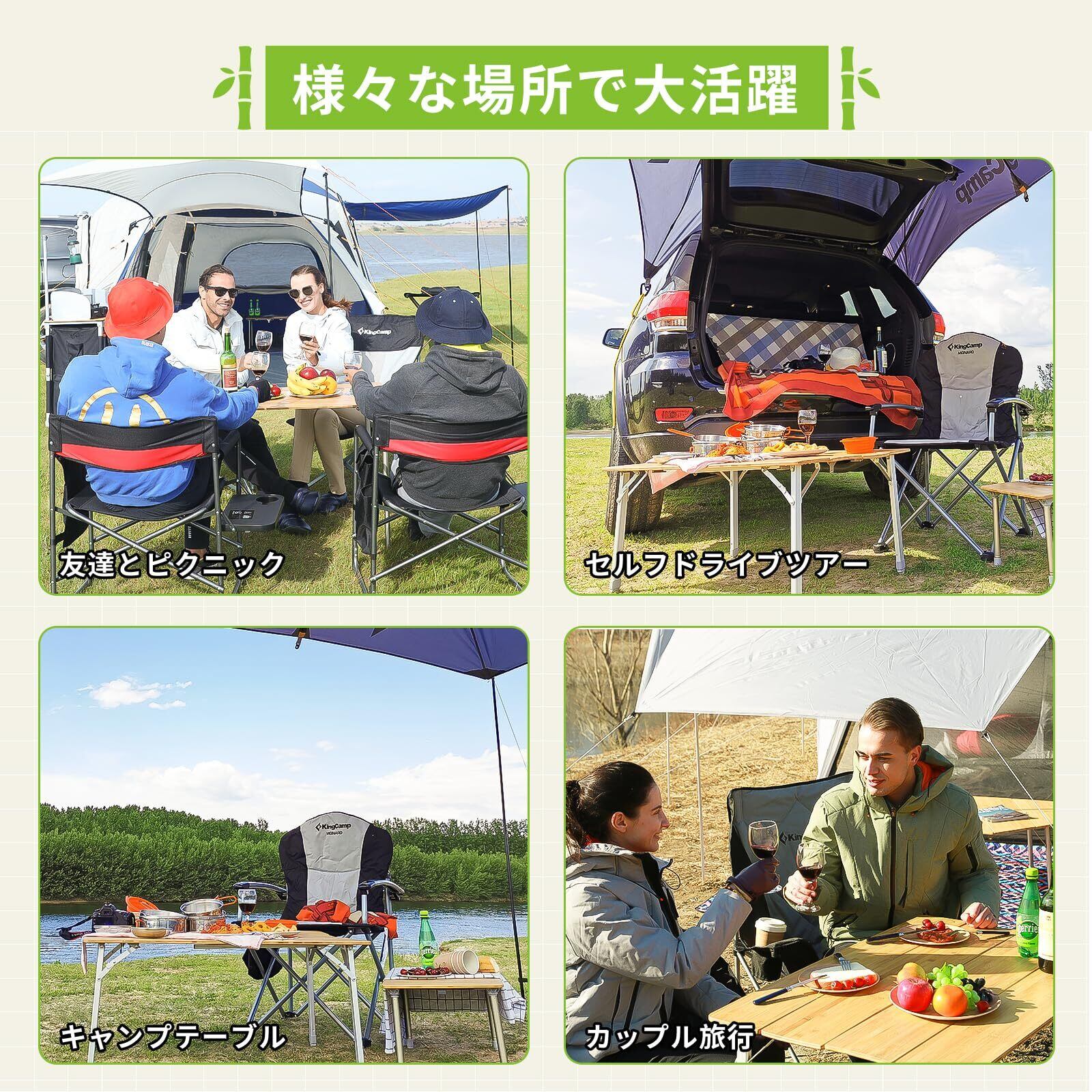 KingCamp 折りたたみテーブル キャンプ テーブル アウトドア 高さ調整 バンブー ロールテーブル 天然 孟宗竹 ダイニングテーブル コンパクト 高耐荷重 おしゃれ ピクニック ファミリー 収納付き
