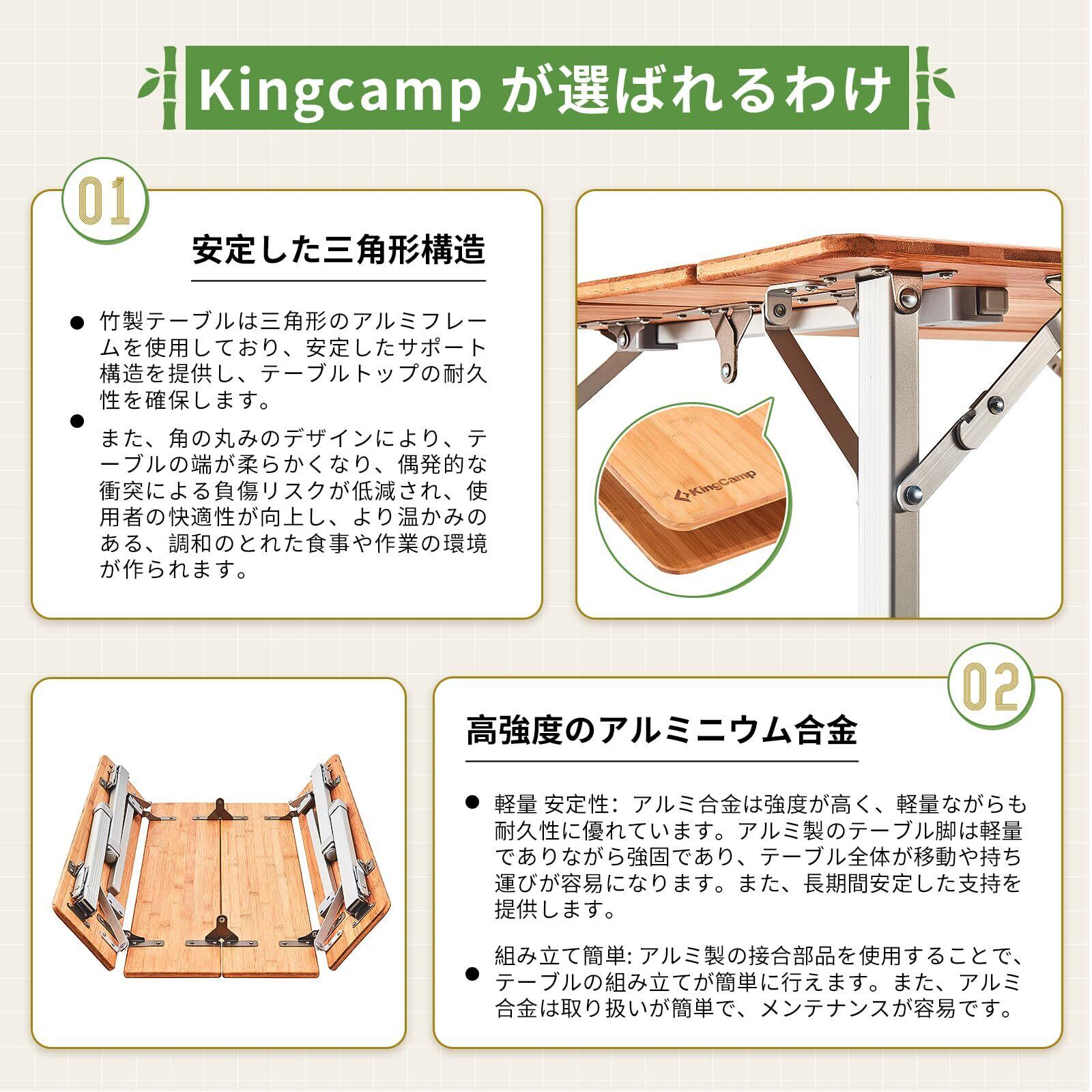 KingCamp 折りたたみテーブル キャンプ テーブル アウトドア 高さ調整 バンブー ロールテーブル 天然 孟宗竹 ダイニングテーブル コンパクト 高耐荷重 おしゃれ ピクニック ファミリー 収納付き