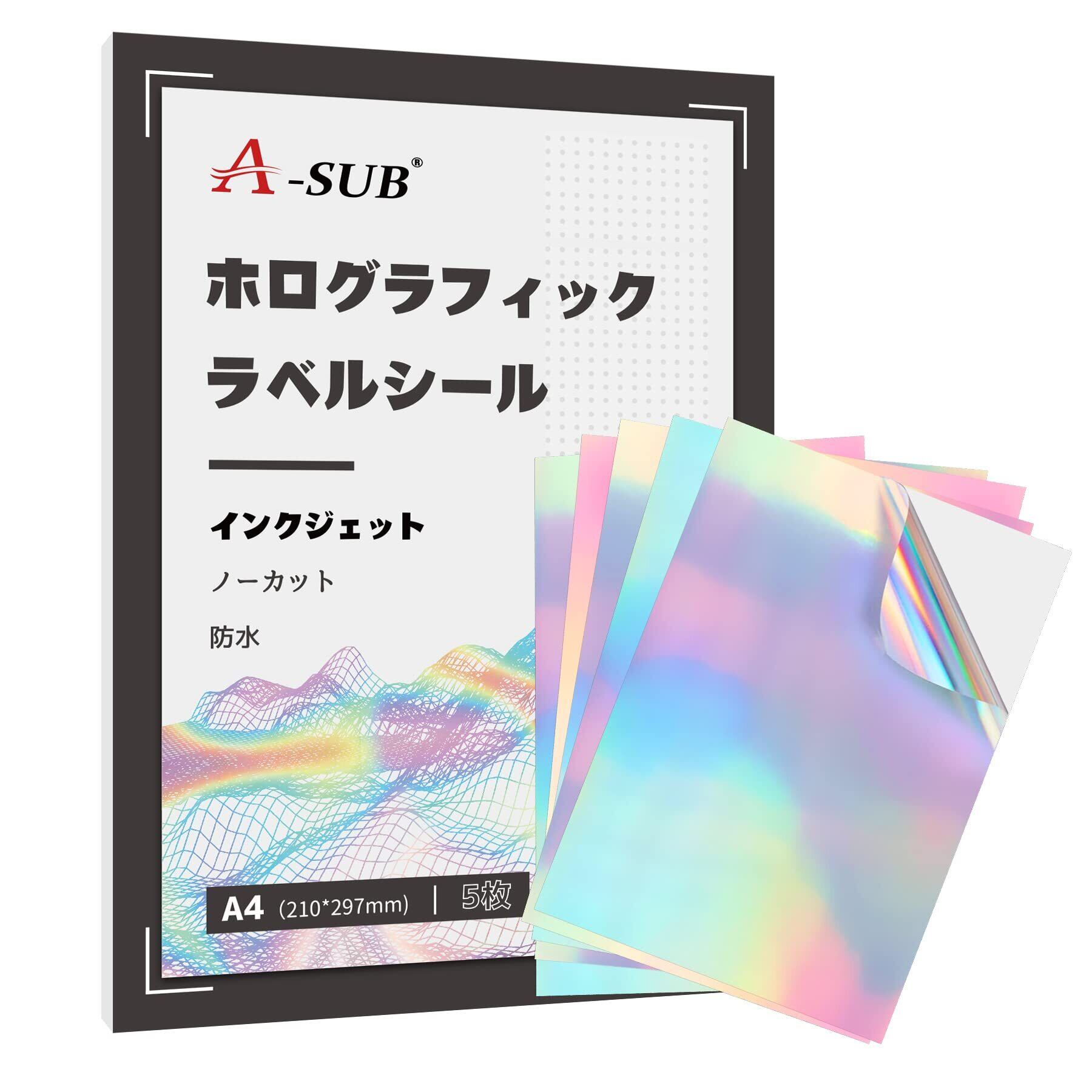 A-SUB 印刷できる ホログラムラベルシール ステッカー用紙 はがせる 耐水 光沢 5枚 ホログラフィック インクジェット染料インク用