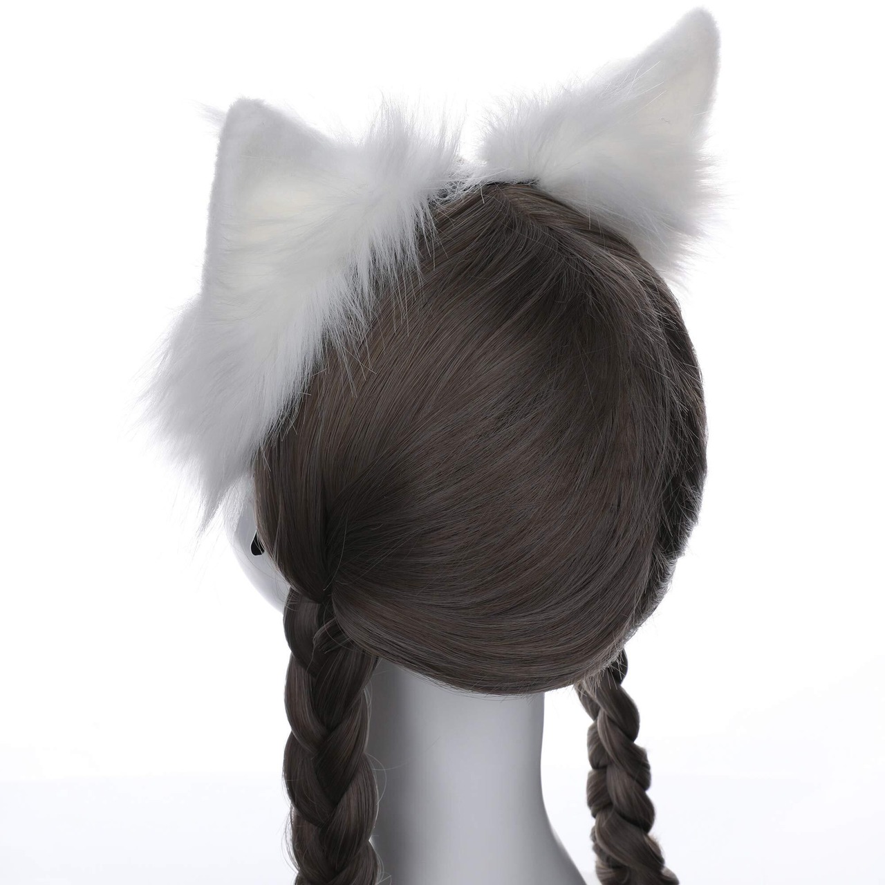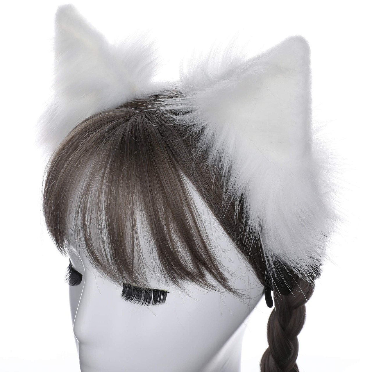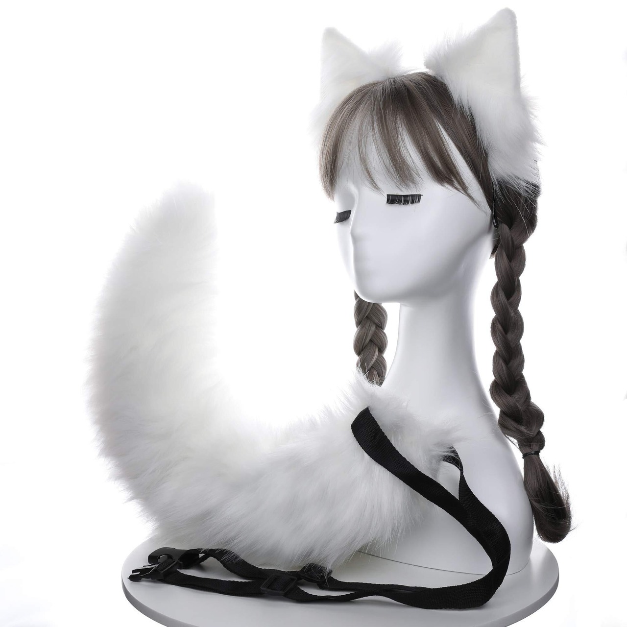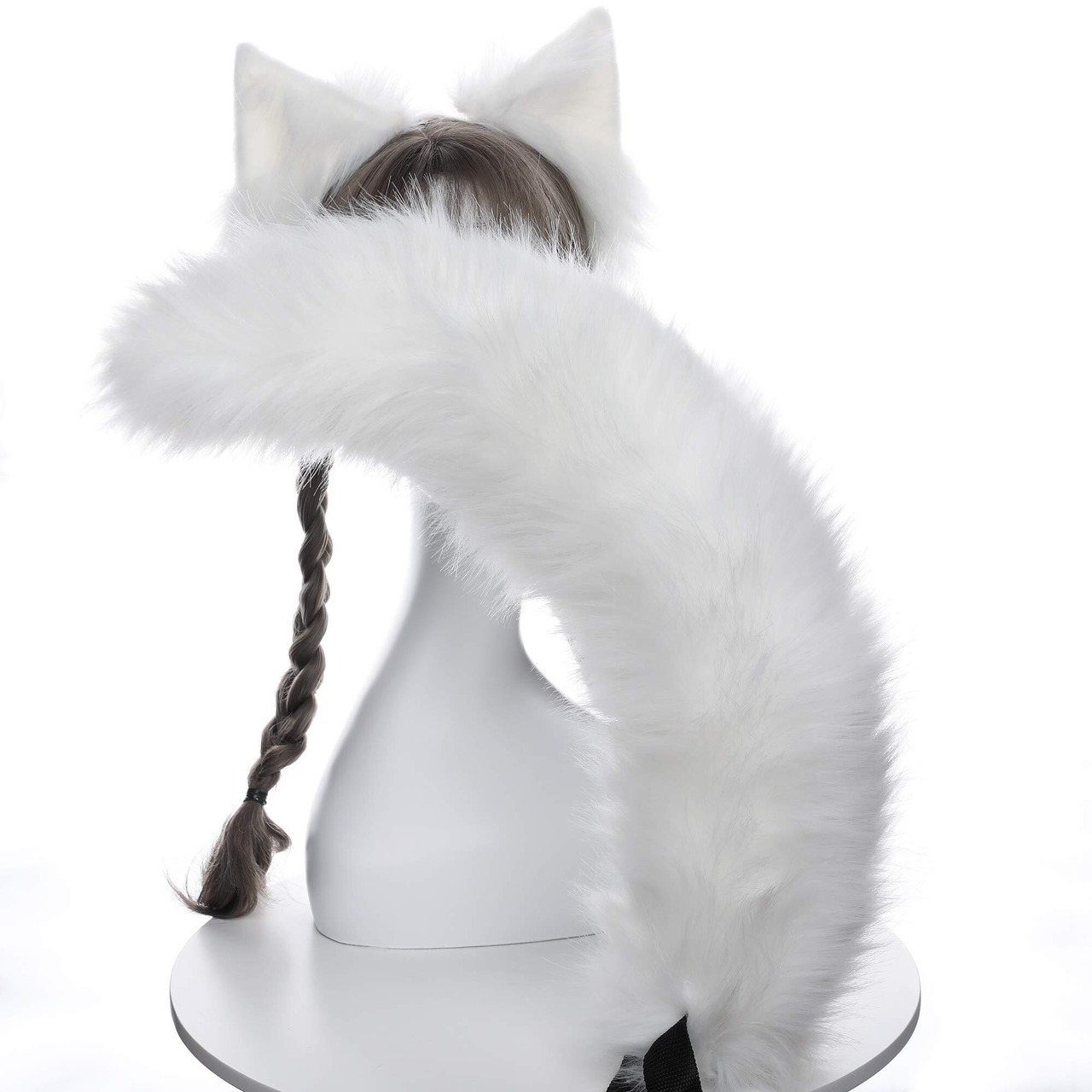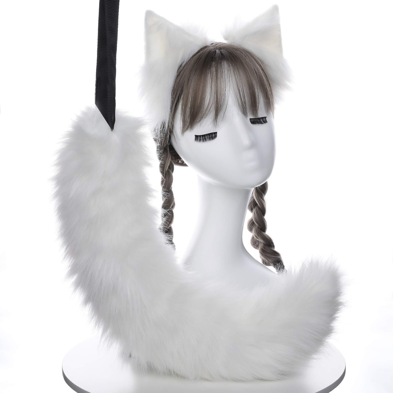 [SENMHS] きつねみみ きつねしっぽ 狐 狐 狼 耳 お尾 きつね尻尾 しっぽ 手作り モコモコ COSPLAY アクセサリー コスプレ コスチューム 用 衣装 仮装 変装 文化祭 イベント パーティー 学園祭 お遊戯 ハロウィン 男女兼用 尾+耳 03 (03シロ)