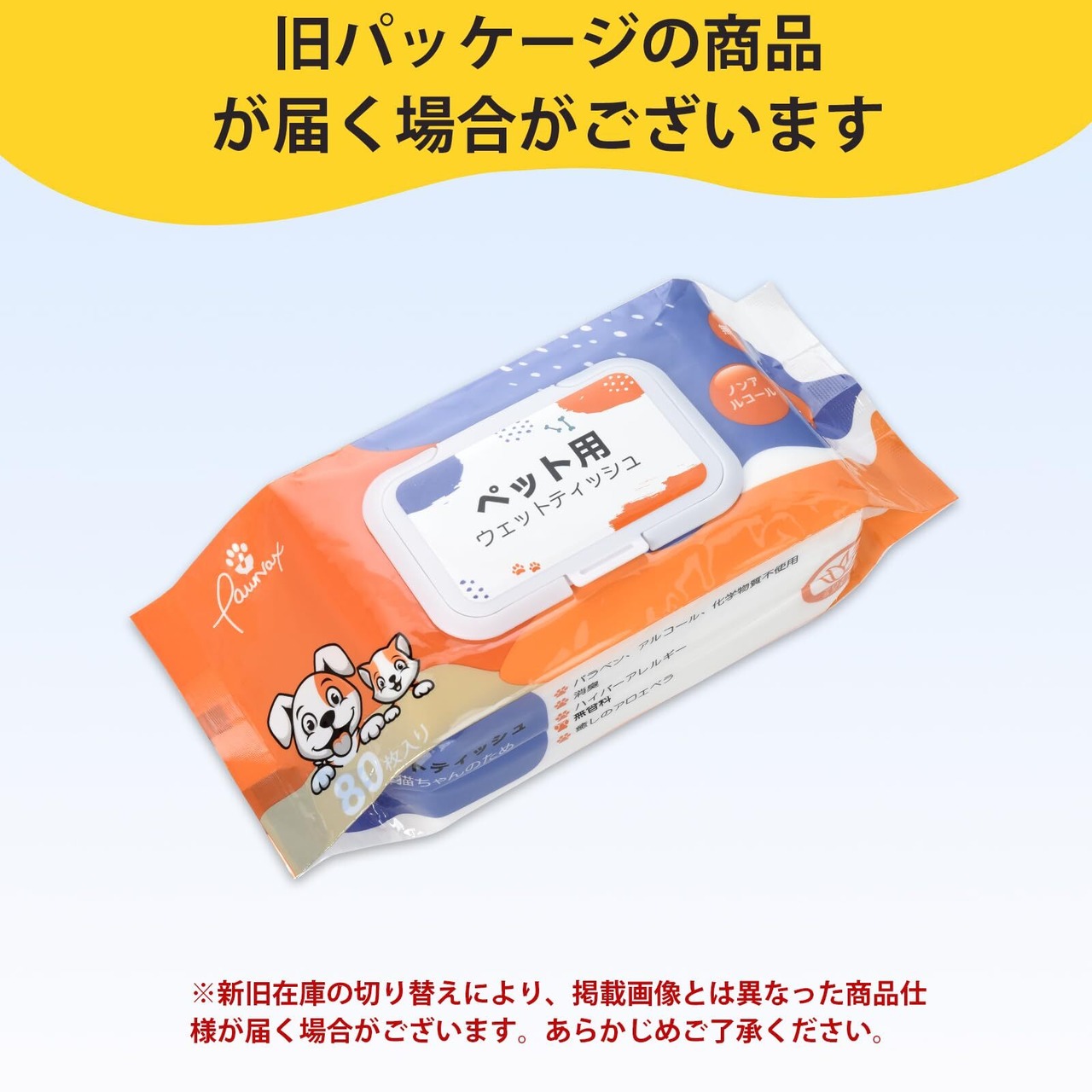 PAWNAX ペット ウェットティッシュ 純水99% ノンアルコール 無香料 なめても安心 犬用ボディシート お口・耳・目のまわり用 犬 足拭きシート 80枚×3個【240枚】愛犬愛猫用 犬 ウェットティッシュ 厚手【シートサイズ約15×20cm】
