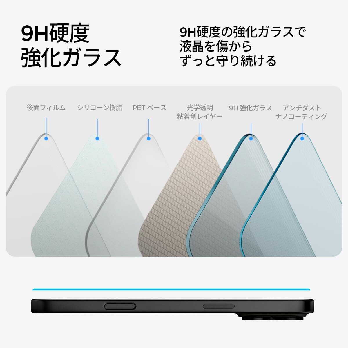 [ナノコーティング・飛散防止 ] 表面のナノコーティングが指紋や汚れを防ぎます。汚れが付きにくいため、指滑りがスムーズな触り心地が特徴です。飛散防止処理を行っており、保護フィルムが割れた際にもけがの心配はしなくてもよし。