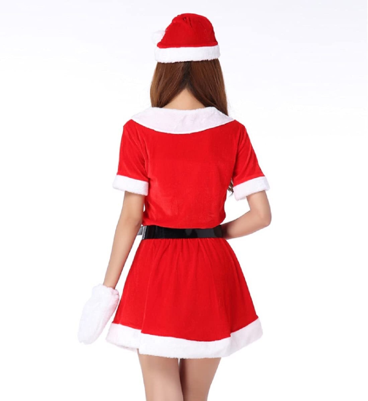 セット内容は、帽子+ドレス+ベルト+手袋の4点/レディースサンタは止まらない。