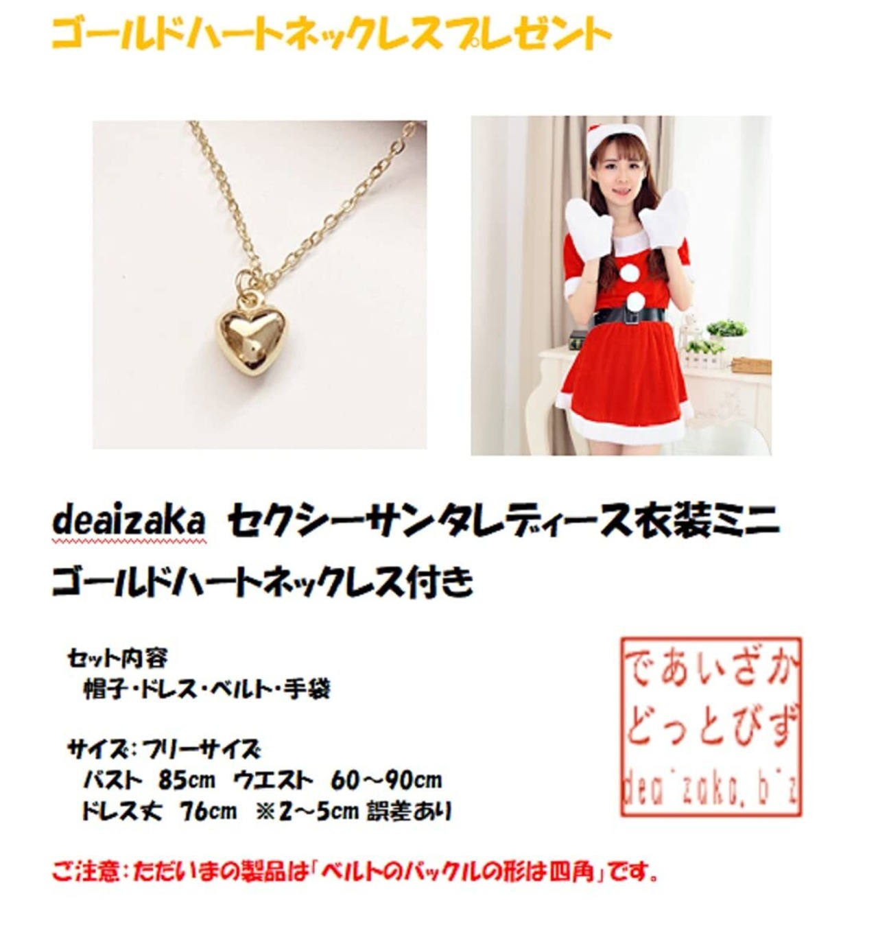 deaizaka セクシー サンタ レディース コスプレ 衣装 ミニ ゴールドハートネックレス 付き