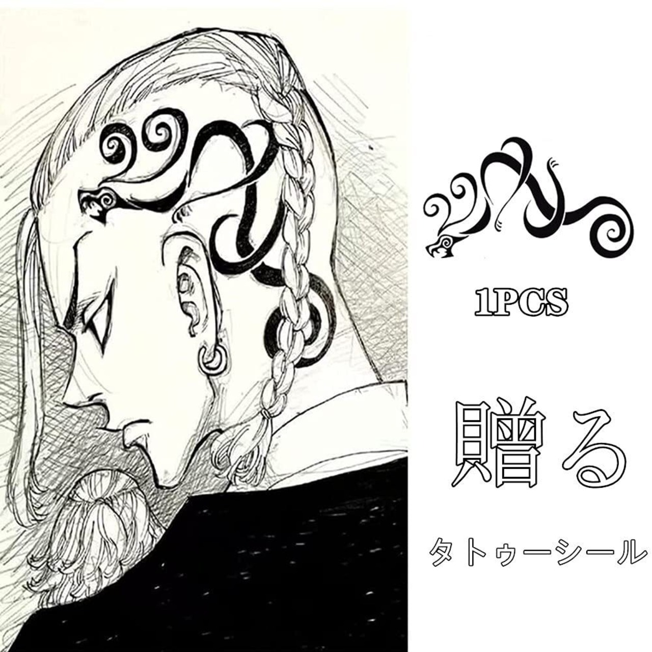 イヤリング 副総長 龍宮寺堅 耳飾り 両耳ピアス ペア 人気 アニメ キャラクター 周辺 アクセサリー 萌えグッズ 小物 簡単 おしゃれ ファッション ピアス 男女兼用 贈り物 装飾 コレクション 東京卍会 グッズ タトゥーシール付き