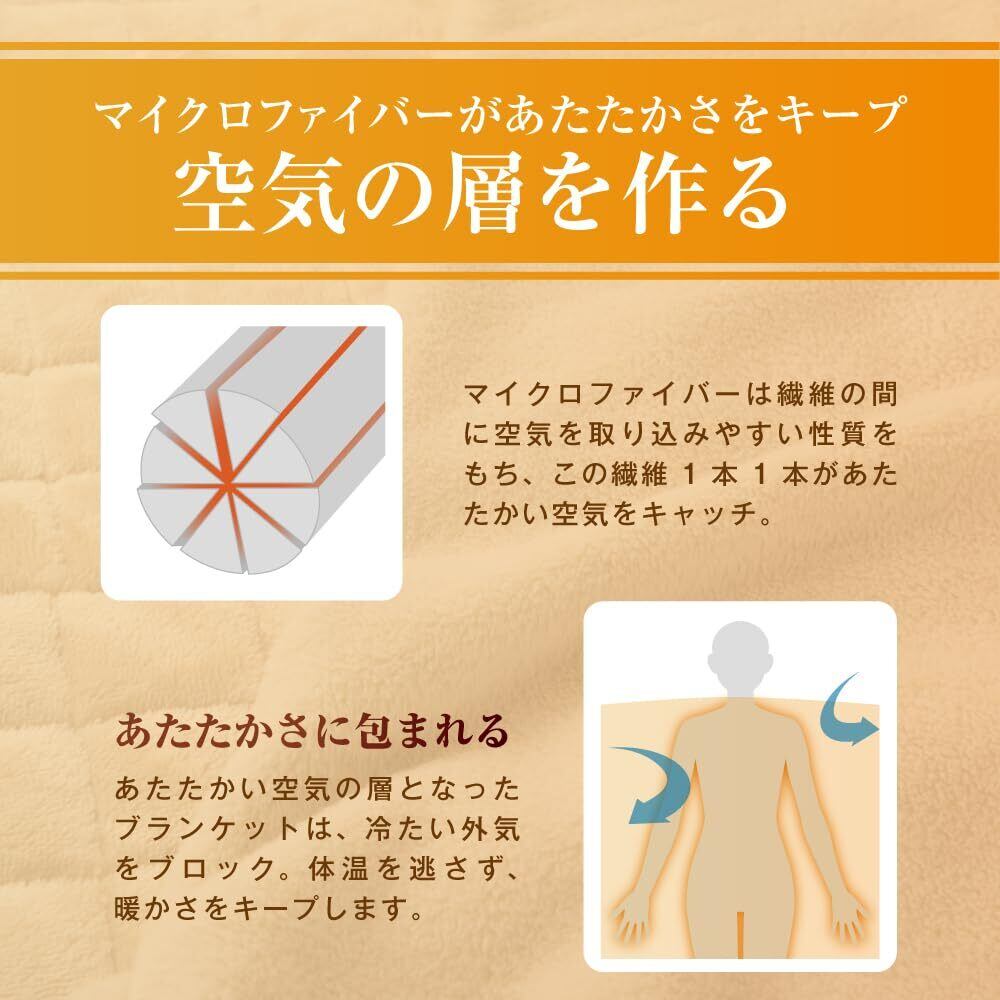 【高い保温性&空気のような軽さ】ぽか暖毛布には中空綿を採用。マカロニ状の繊維が暖かい空気を取り込み冷気を遮断。高い保温性を実現します。また、一般的な毛布より軽量なので、動きやすくなっています。