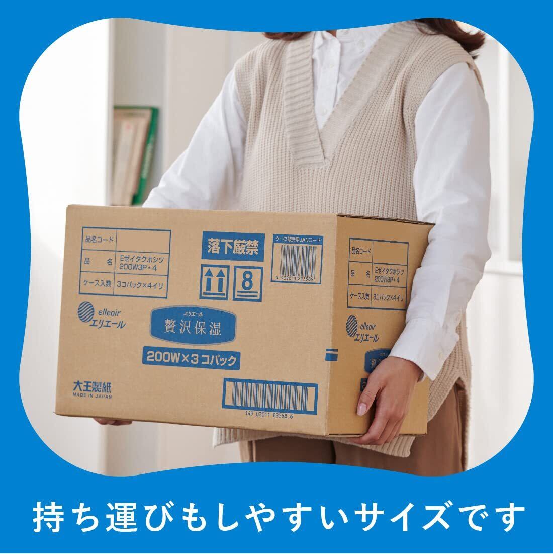エリエール 箱ティシュー 贅沢保湿 200組×12箱(3箱×4パック) パルプ100%【ハーフケース】