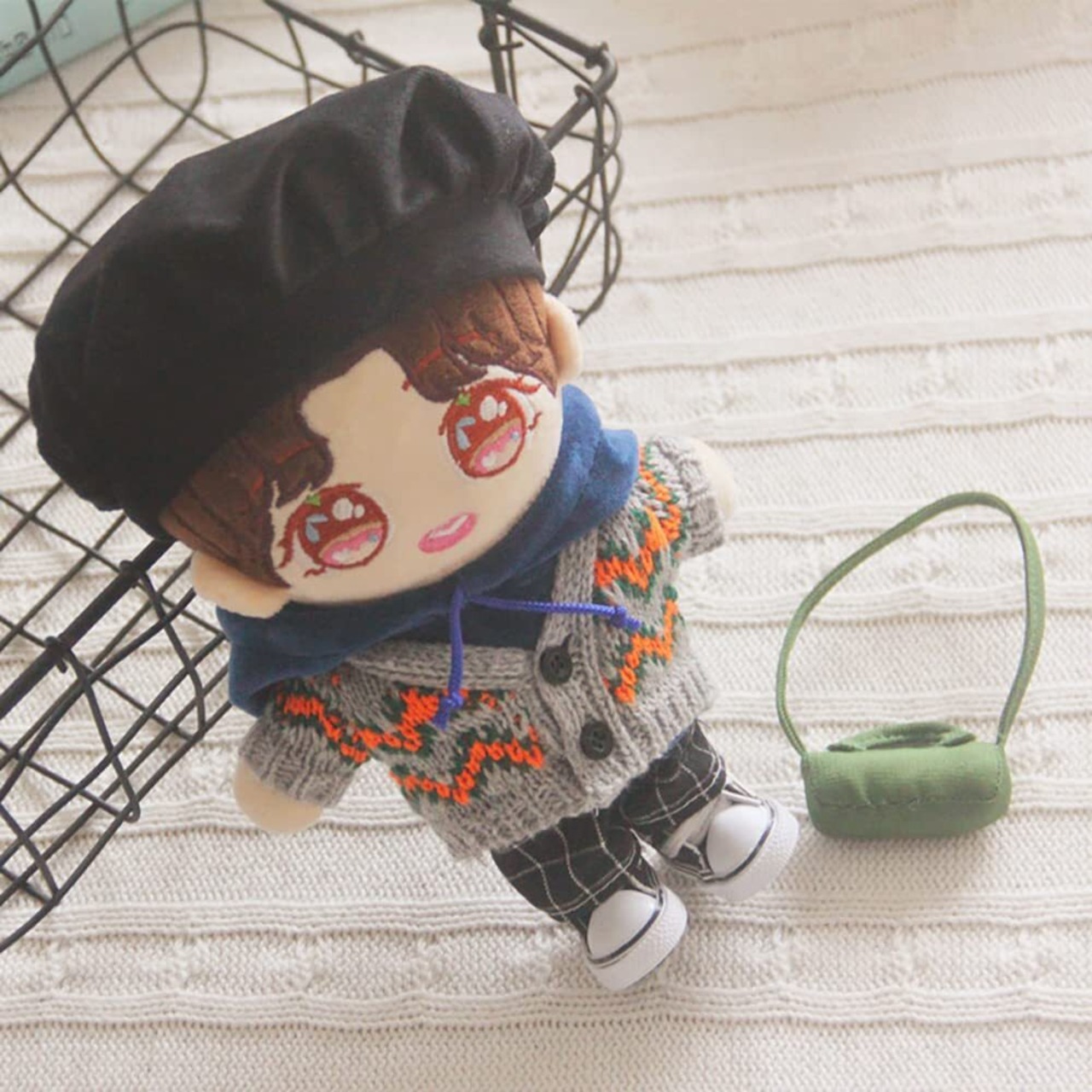 niannyyhouse 20cm人形の服 ぬいぐるみ 用 帽子+パーカー+セーター+ズボン+パケット 5点セット 着せ替え 綿人形の服 ベレー帽 人形ベビー服