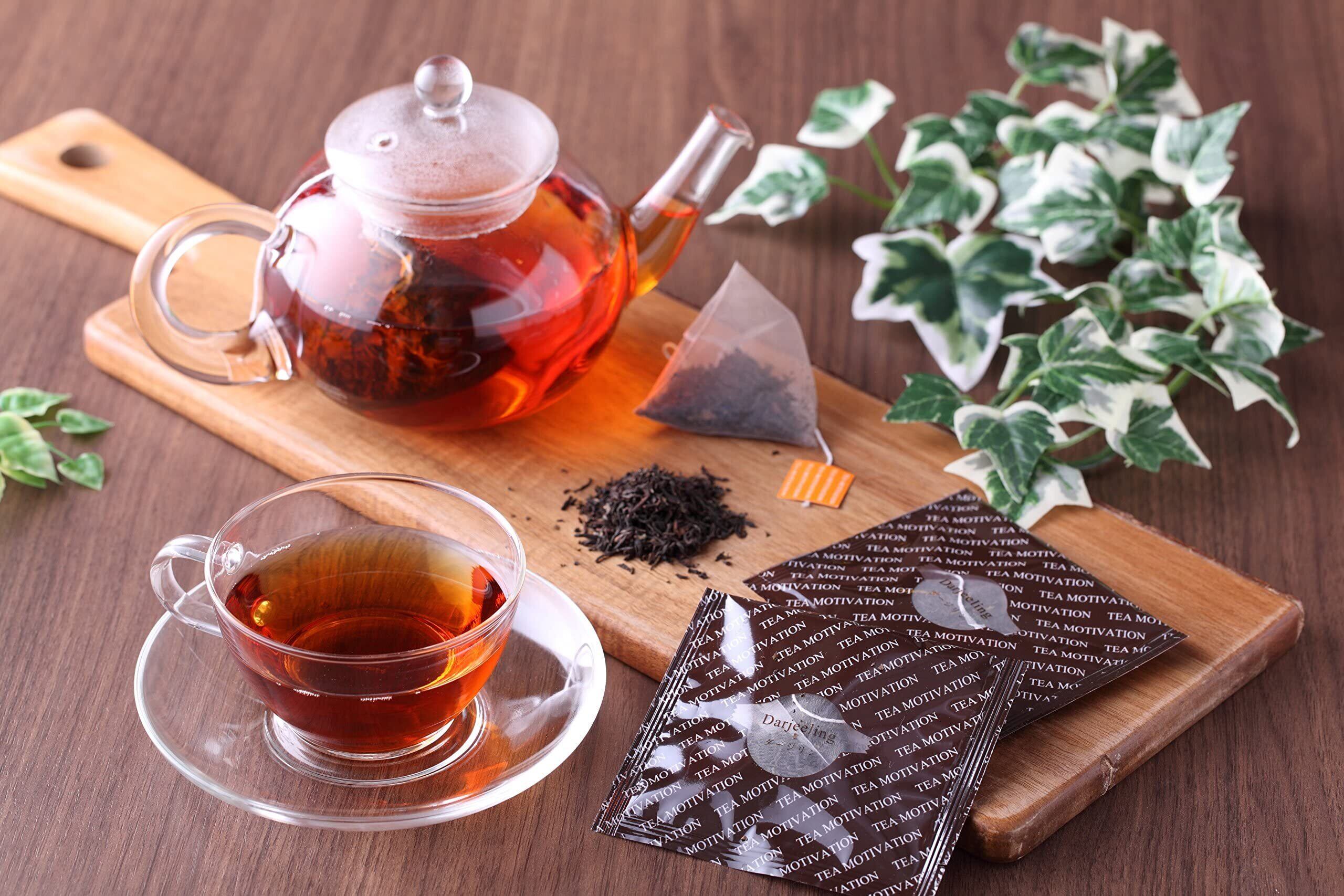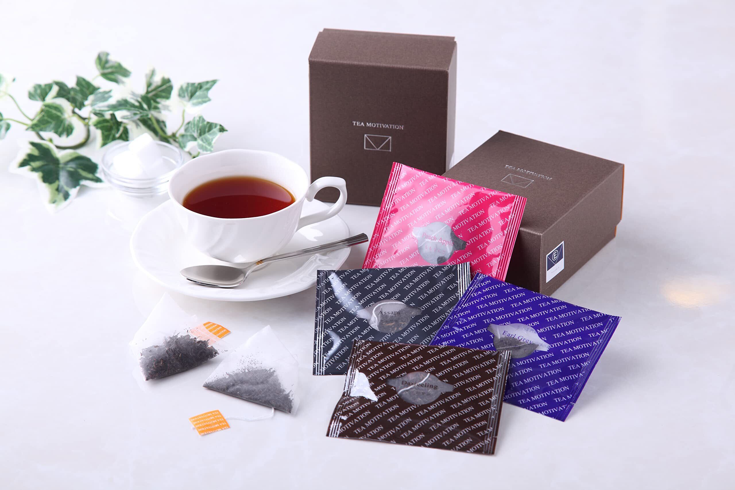 【ダージリン】TEA MOTIVATION の中でも最上位品種のダージリン。 ダージリンだけがもつ上品で芳醇な香り、 深い味わいが際立つ、自慢の逸品です。4包。【アッサム】甘味が強くコクのある味わいと 香り高さをご堪能頂けます。 ストレートはもちろん、 ミルクティーにもマッチします。6包。【アールグレイ】ベルガモットの香りをまとった 爽やかなフレーバーティー。 すっきりとした味わいとアールグレイだけの 特徴的な香りをお楽しみいただけます。6包。【ももりんご】一番人気のフレーバーで特に女性に人気です。ももとりんごのフレッシュで 甘い香りのフレーバーティー。 もぎたてのフルーツを思わせる みずみずしさが詰まっています。6包。