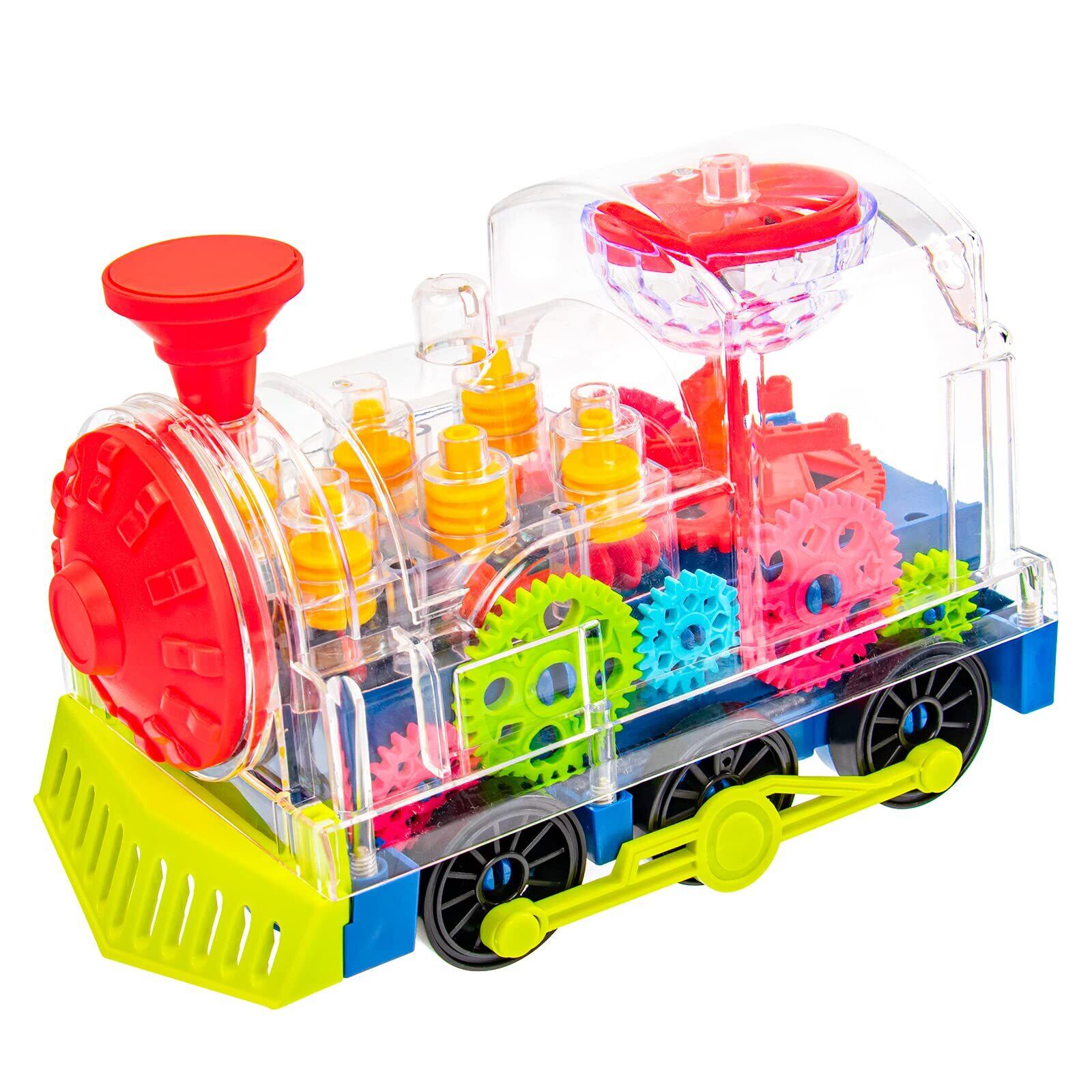 子供のおもちゃ 機械式ギアトレイン 電気自動車のおもちゃ ミュージカル 知育玩具 男の子 女の子 クールな光と効果音付き カラフル 運転 車の照明 音楽 透明ケース