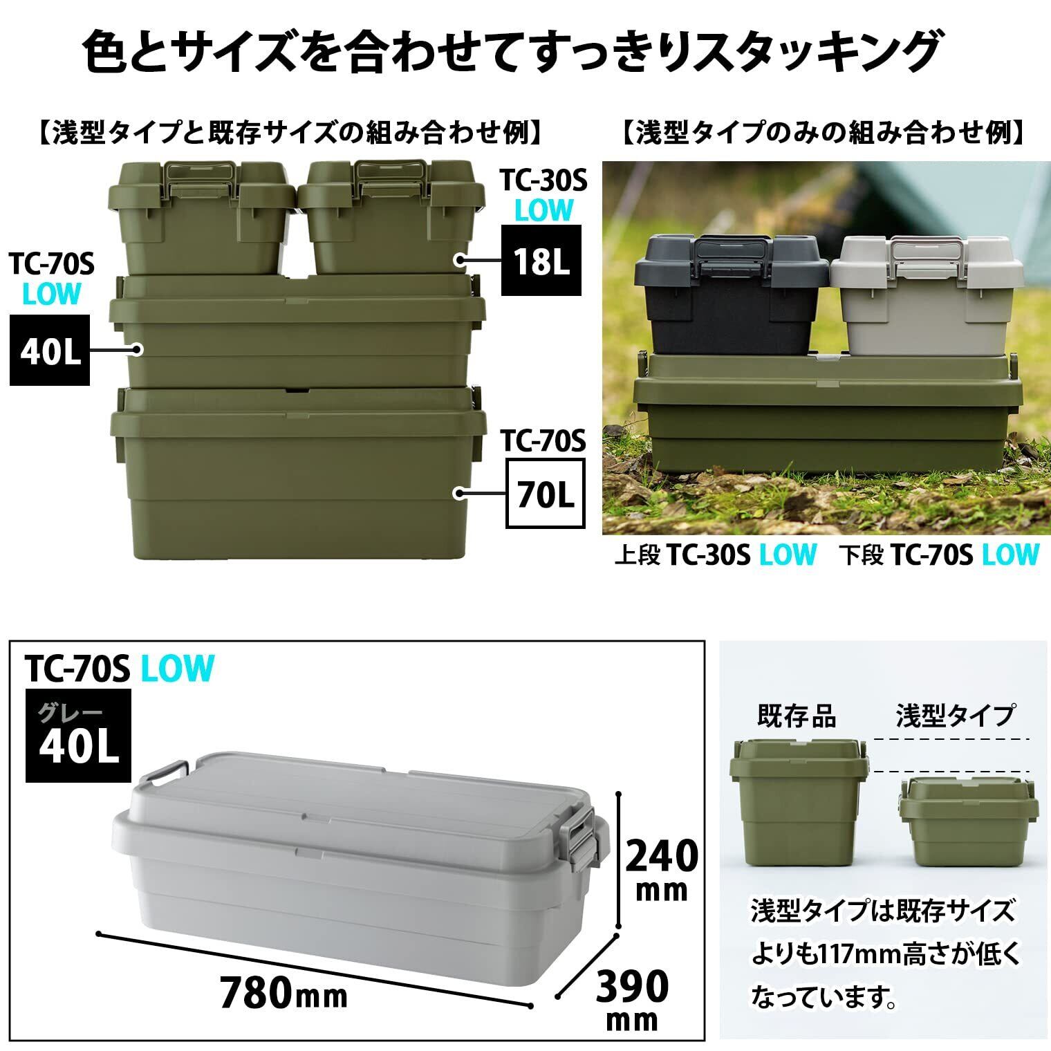 リス(RISU) 収納ボックス トランクカーゴ 40L グレー 日本製 TC-70S LOW コンテナ ボックス スタッキングロータイプ屋外収納 キャンプ 防水 GHON156