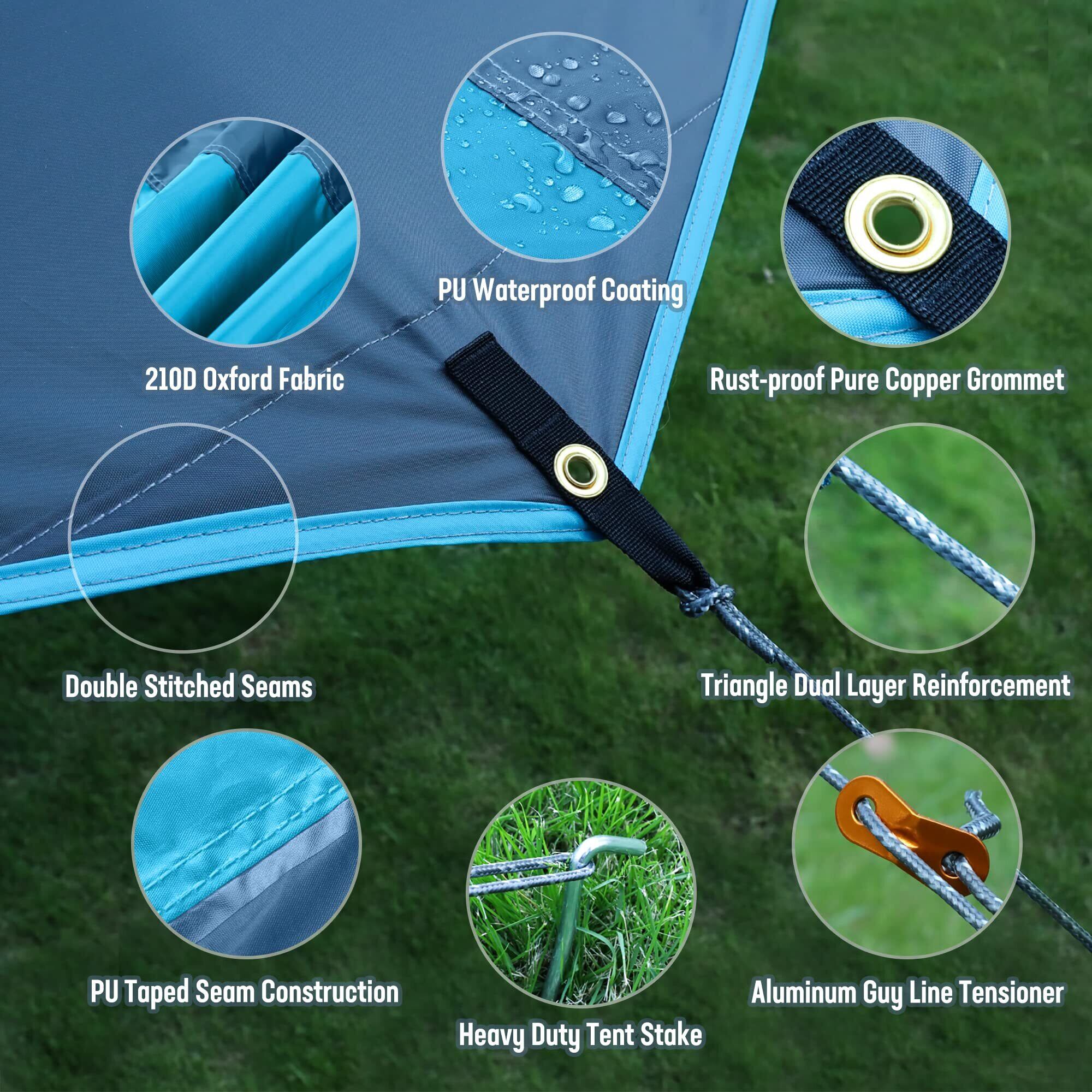 【多用途】このタープは、人生の冒険家にとってすばらしい一品です。キャンプテントのタープだけではなく、日よけ、雨よけオーニング、ピクニックブランケット、ビーチブランケット、ビーチや公園のハンモックカバーなどとして使用できます。自由度が高いなので、様々な活動にご利用いただけます。 使用中に商品について何か不明点がございましたら、いつでもお気軽に連絡してください。