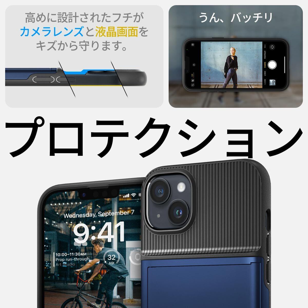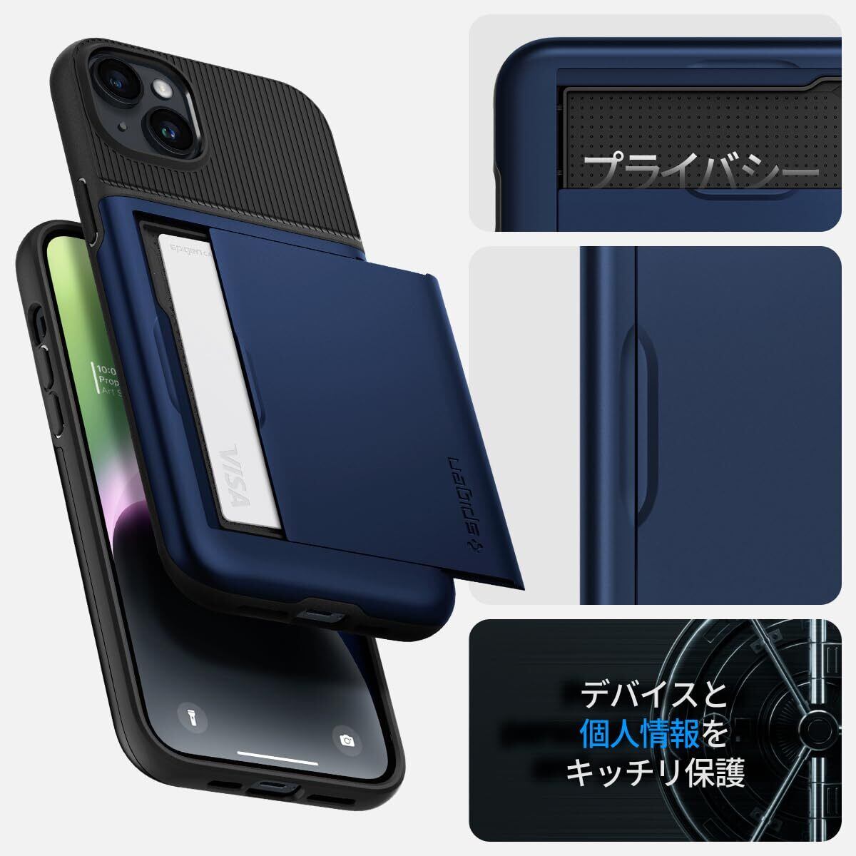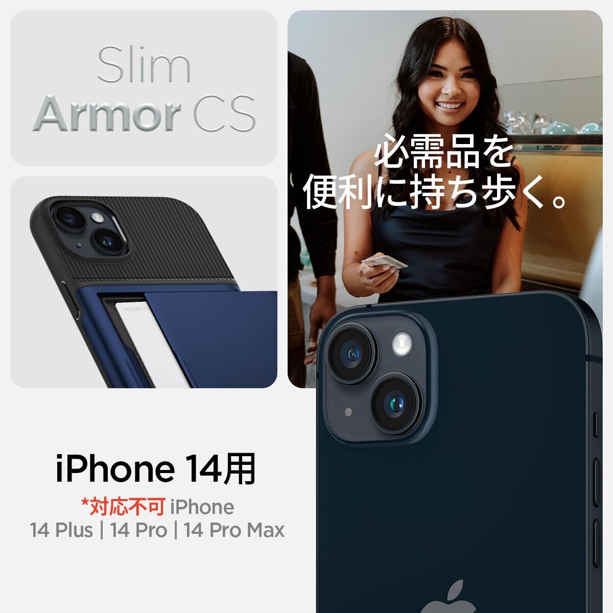 Spigen iPhone14 ケース 手帳型 耐衝撃 カード 収納ケース 2重構造 耐衝撃 米軍MIL規格取得 落下防止 IC カード ポケット パスケース スリム・アーマー CS ACS05060 (ネイビー・ブルー)