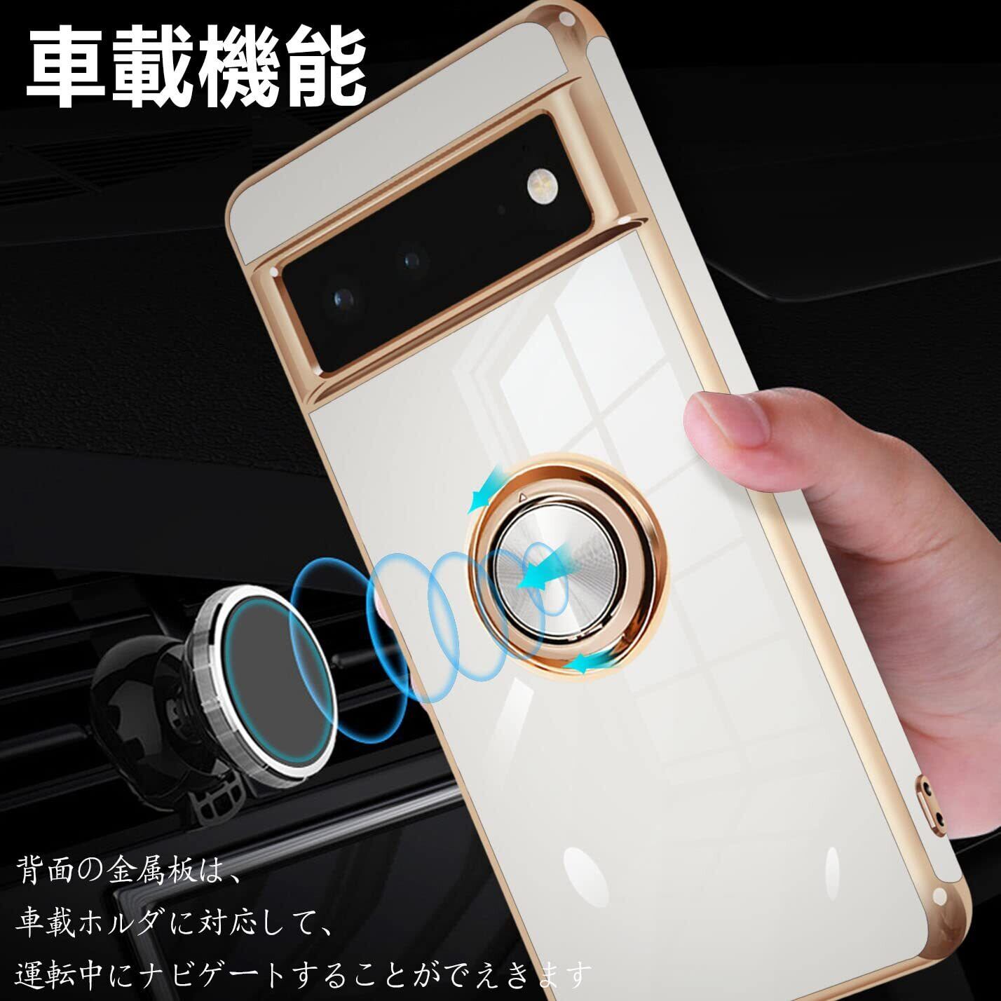 Google Pixel 6 ケース リング グーグル ピクセル6 ケース リング付き カバー 耐衝撃 携帯カバー TPU 軽量 スタンド機能付き 360回転 車載ホルダー (Google Pixel6,クリーミーホワイト)