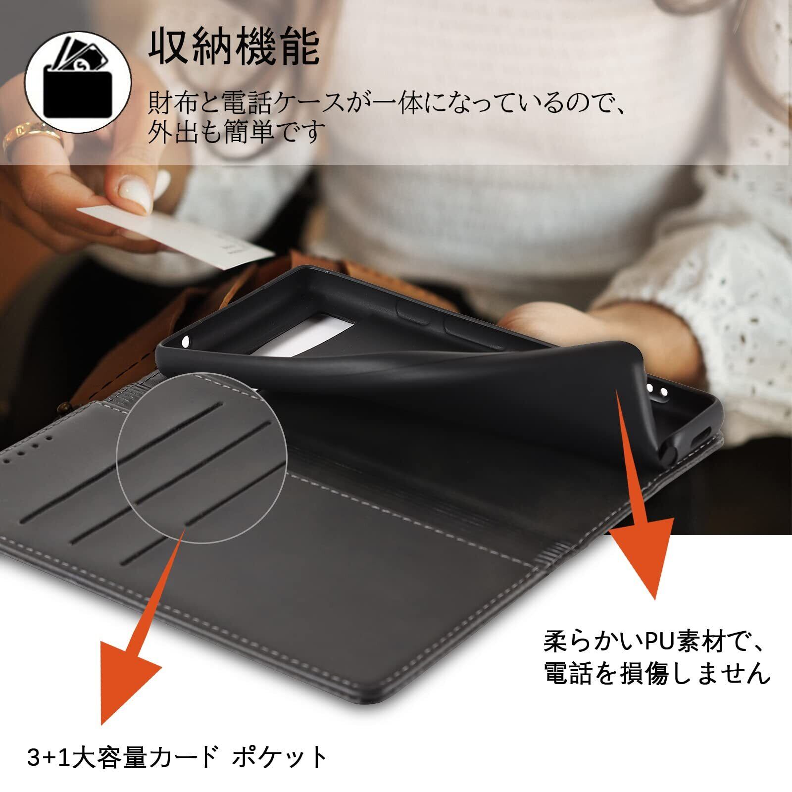 【高級皮革】高品質のPUと柔軟なTPUカバーと組み合わせ、軽量で耐衝撃性に優れ、変形しにくくまた、取り外しが簡単で、スマホ本体への損傷の心配ありません。